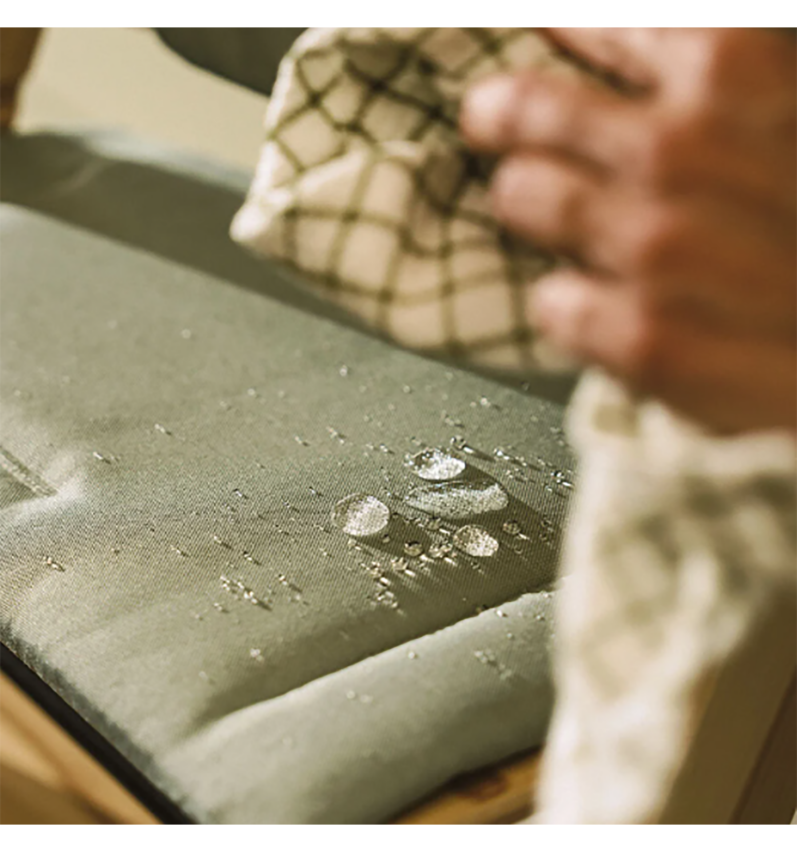 Està fabricat en polièster 100 % la certificació Green Leaf d'Intertek, garantint un producte més respectuós amb el medi ambient. El seu teixit hidròfug facilita la neteja diària i permet rentar-lo còmodament a la rentadora dia.