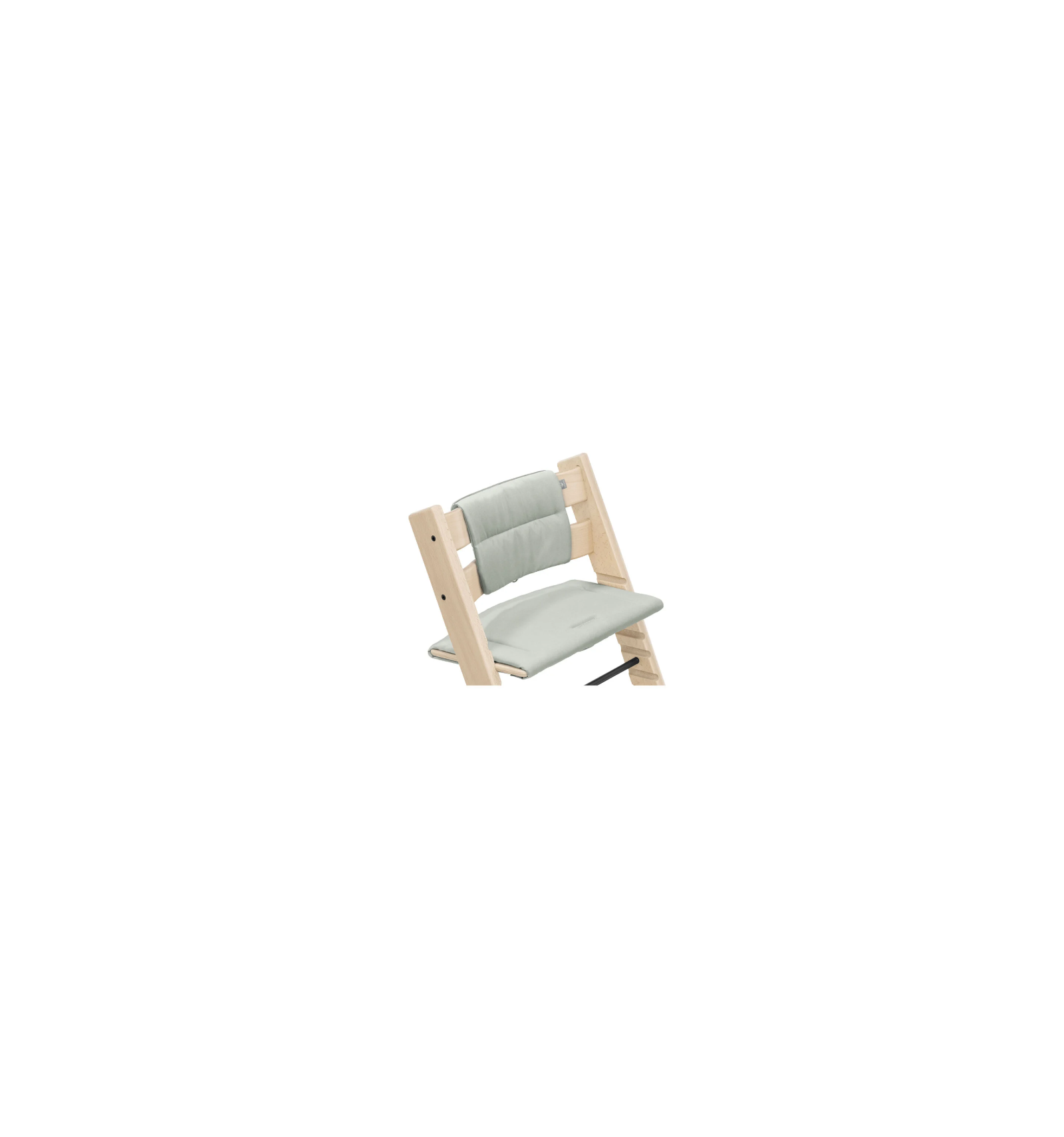 El coixí Tripp Trapp® millora la comoditat i el suport de la trona, amb un ajustament perfecte, teixit hidròfug i materials sostenibles fàcils de netejar.