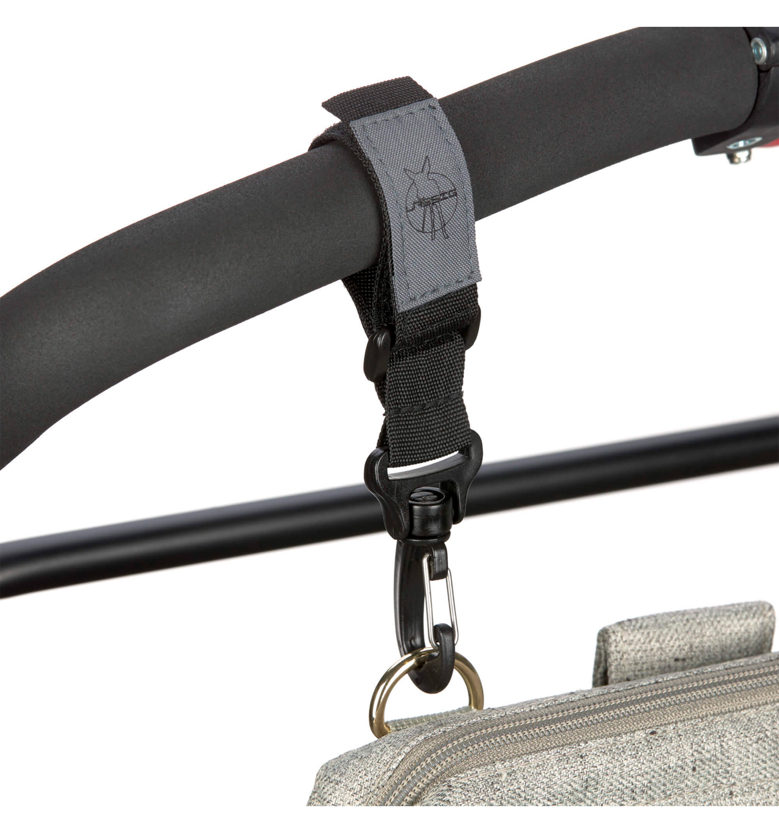Aquestes pràctiques corretges amb banda de Velcro® i mosquetons són adequades per a penjar bosses de bolquers en gairebé qualsevol model de cotxet