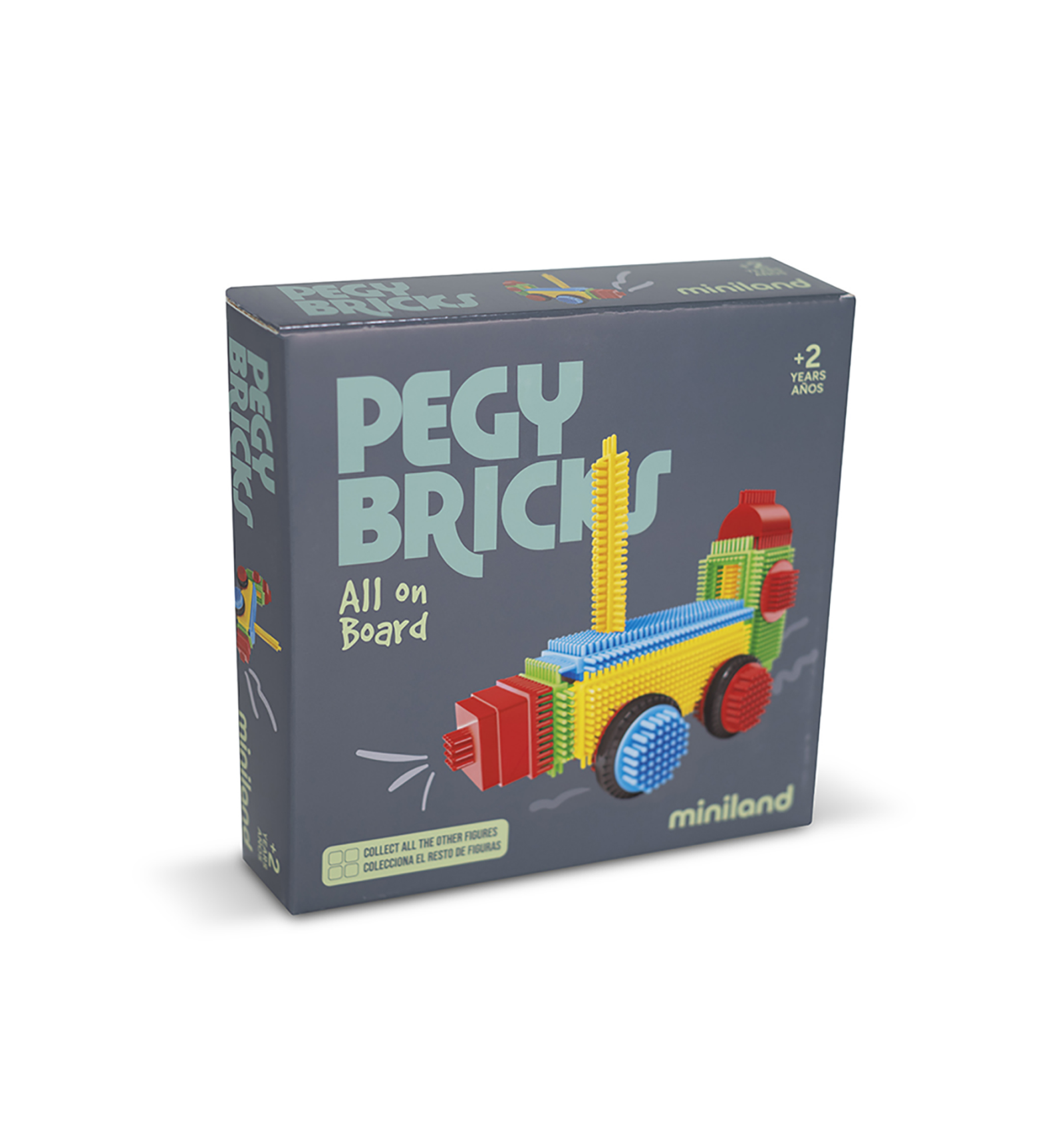 Amb Pegy Bricks: els seus fills propis, All On Board 22 peces grans, acolorides i fàcils d'encaixar. Dissenyades especialment per mans petites, permeten construir de forma senzilla i segura.