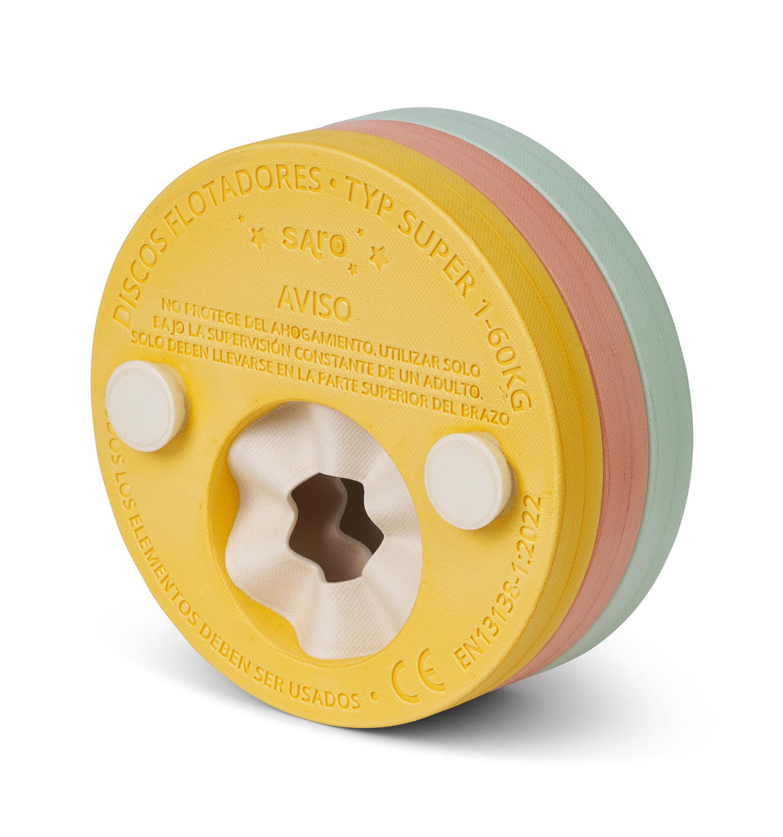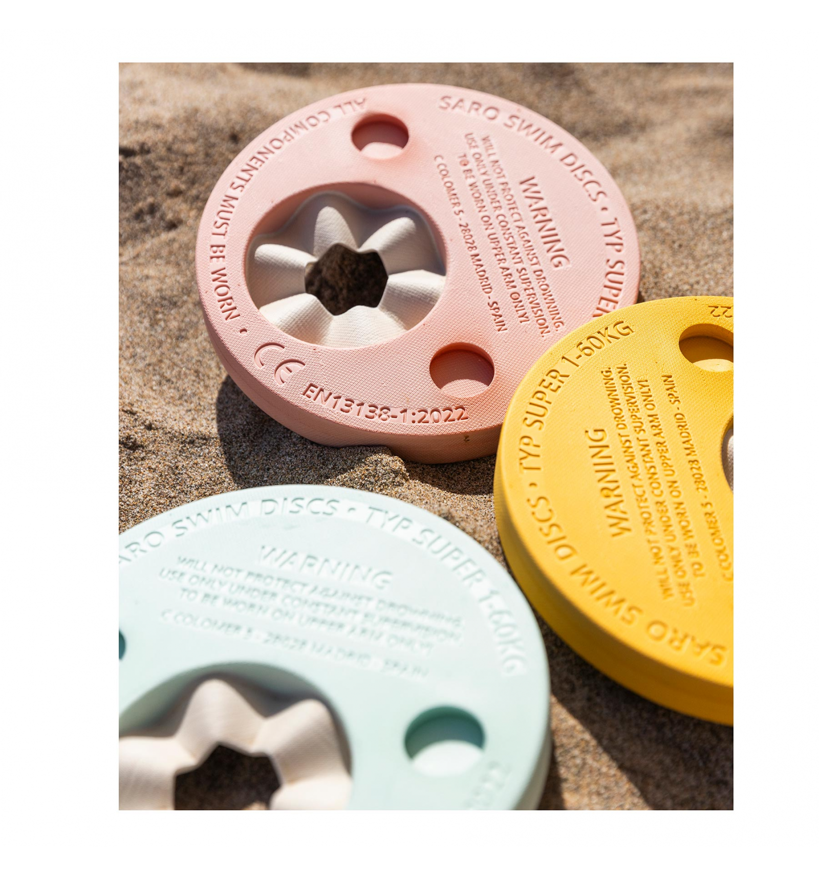 Els braçalets de Saro estan compostos per sis discos d'escuma de polietilè que es poden unir o separar fàcilment.