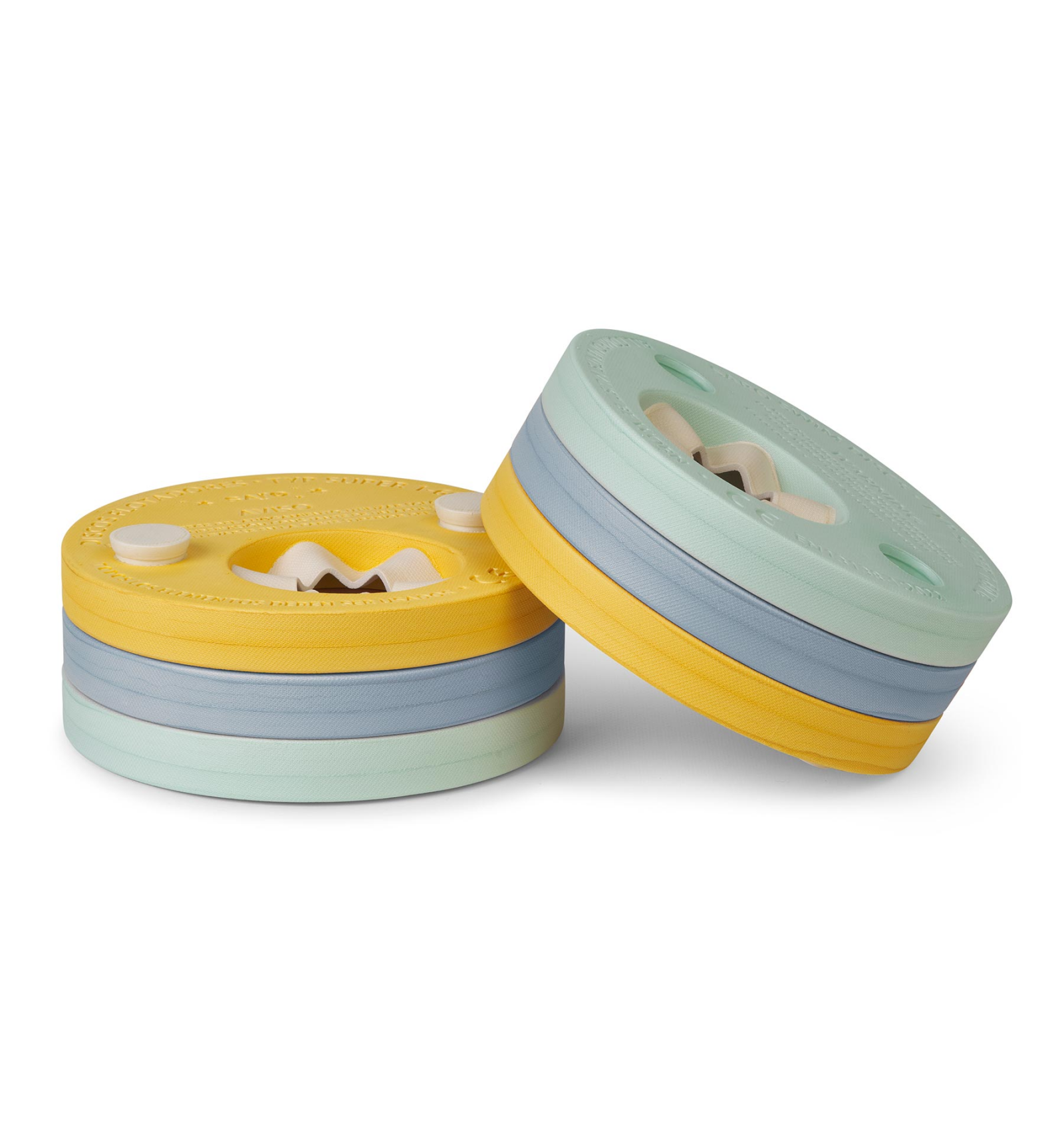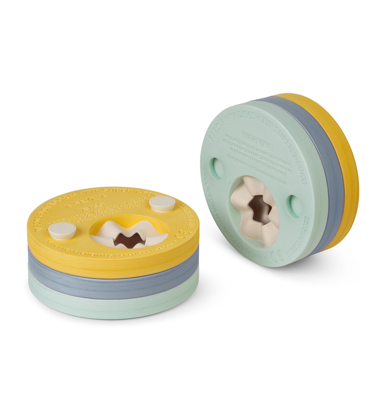 Els braçalets de Saro estan compostos per sis discos d'escuma de polietilè que es poden unir o separar fàcilment.