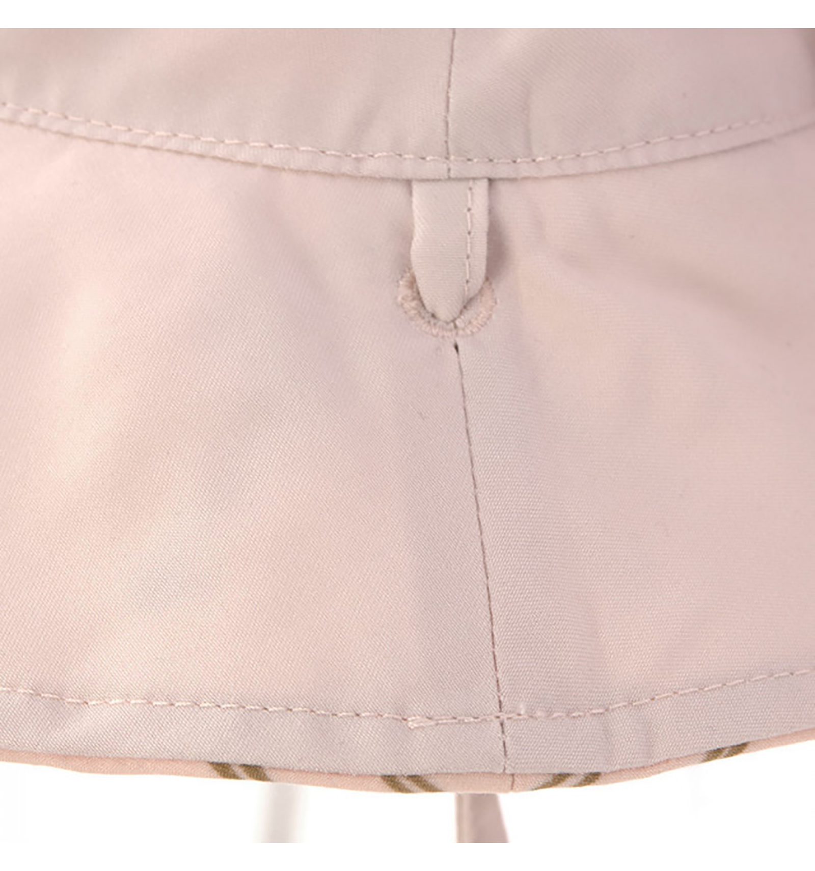 Per a assegurar-se que el barret no es perdi quan fa vent o quan corre, també es pot lligar sota la barbeta del nen/a.