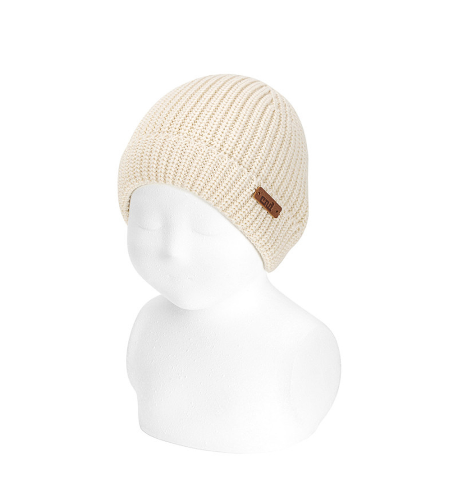 Capell de punt perlat Cóndor en color Lli, suau i 100% cotó. Ideal per a mantenir el cap del nadó còmode i protegit amb un tacte delicat i transpirable. Perfecte per al dia a dia.