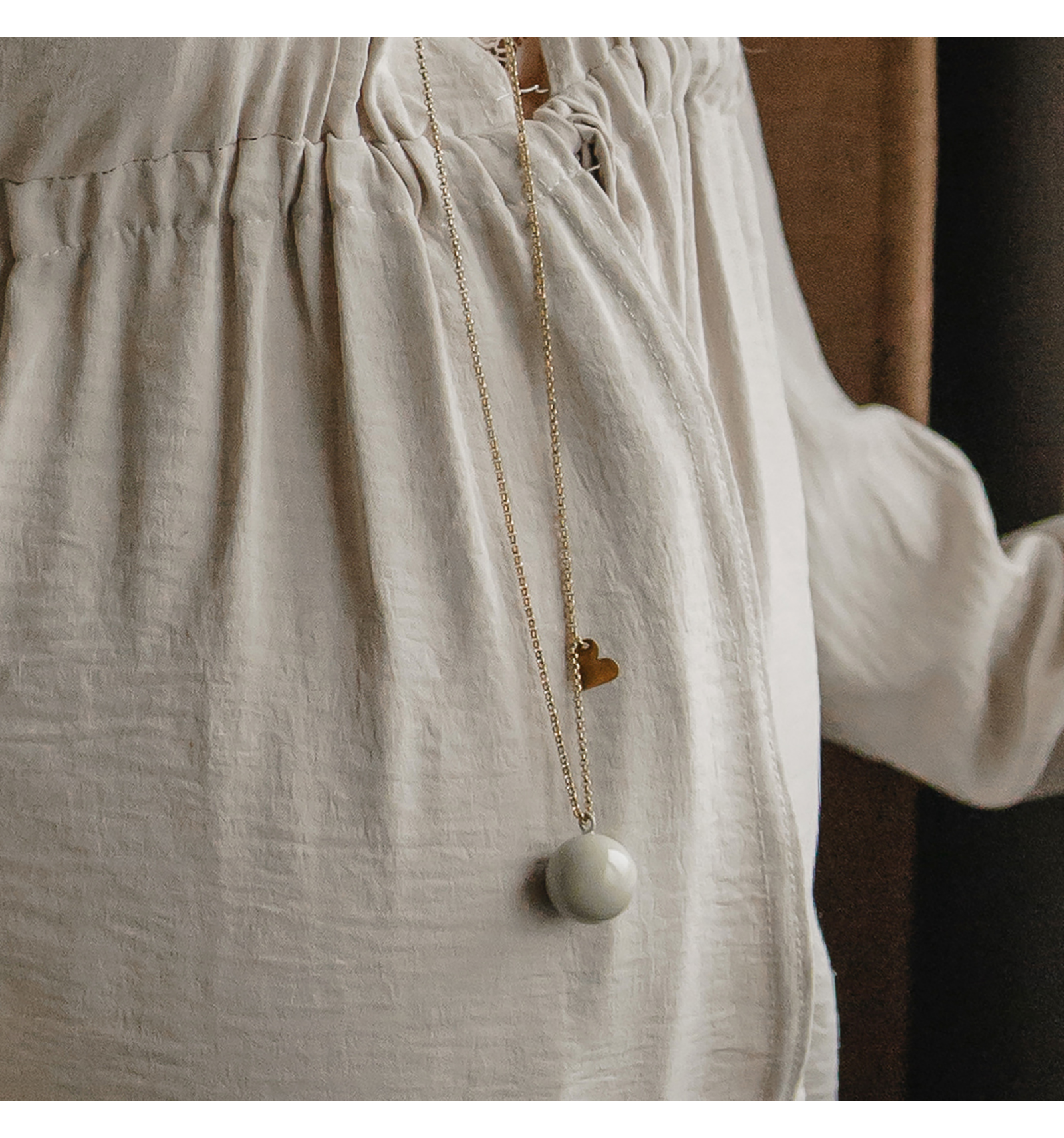 Cada embaràs és un viatge únic ple d'amor i emoció. Aquest collaret de bola emet un so delicat i harmoniós que acaricia el ventre, brindant tranquil·litat tant a mamà com al bebè. A partir del cinquè mes, el teu petit podrà reconèixer la seva melodia i associar-la amb pau i seguretat, creant un vincle especial que continuarà després del naixement.