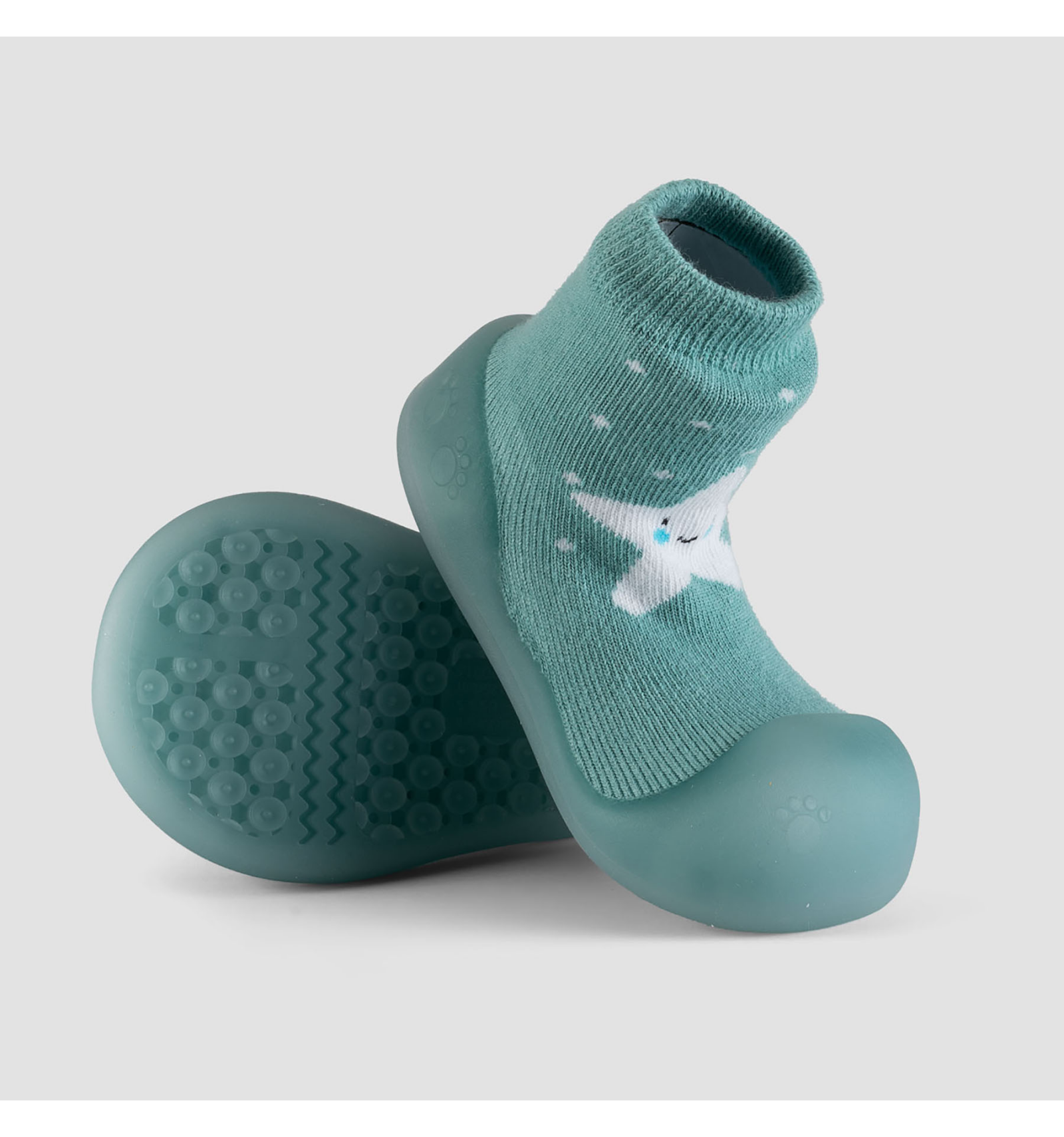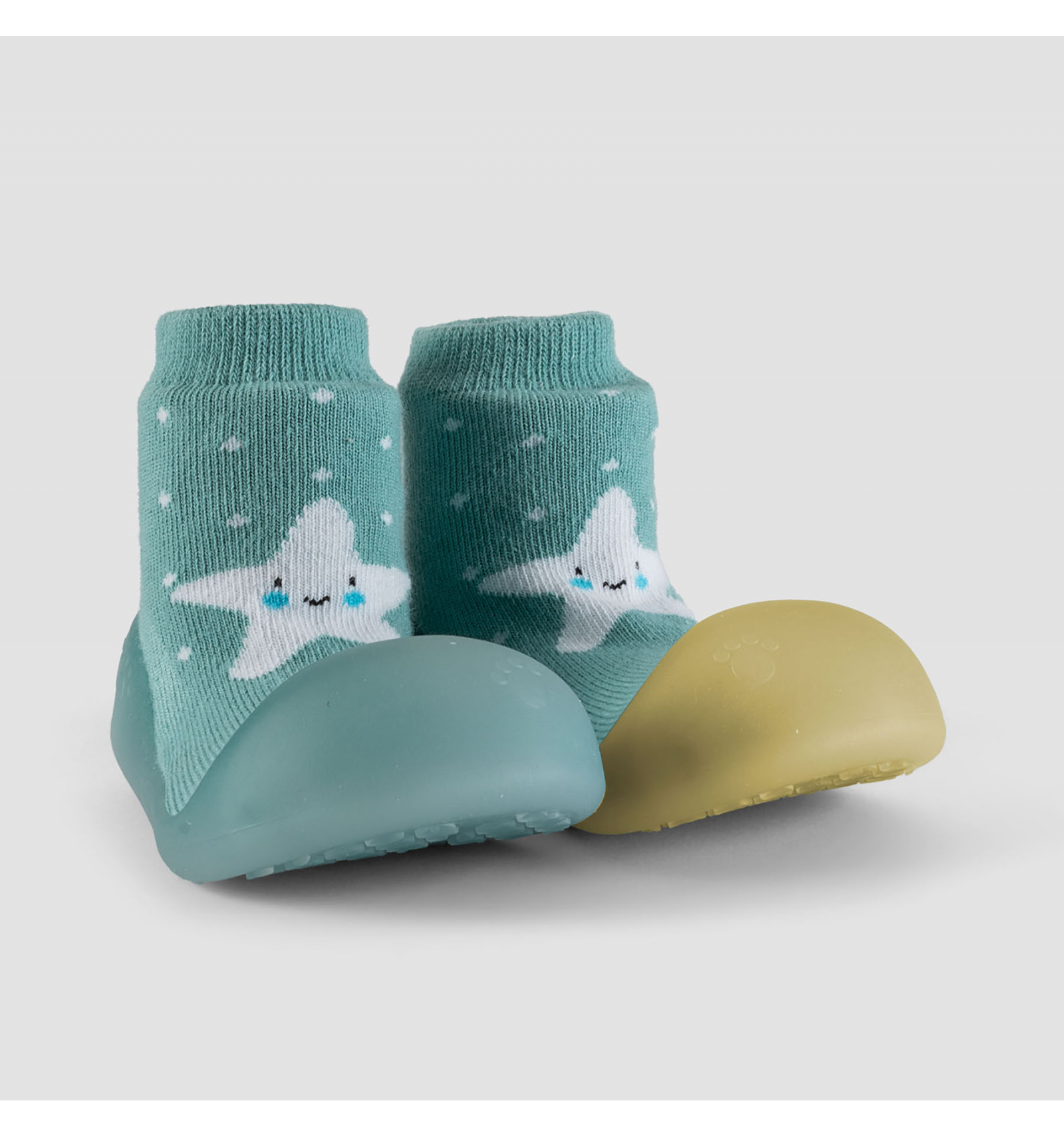 Fabricats en cotó amb sola de TPE, són transpirables, no tòxics i recomanats per podòlegs com la millor alternativa quan no és segur caminar descalç. El seu disseny permet que el bebè senti el terra amb la planta del peu, afavorint el seu equilibri i capacitat de reacció.