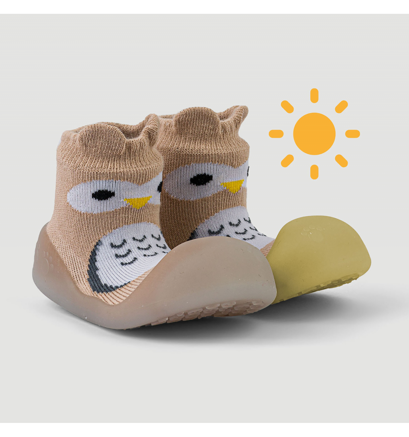 Fabricats en cotó amb sola de TPE, són transpirables, no tòxics i recomanats per podòlegs com la millor alternativa quan no és segur caminar descalç. El seu disseny permet que el bebè senti el terra amb la planta del peu, afavorint el seu equilibri i capacitat de reacció.
