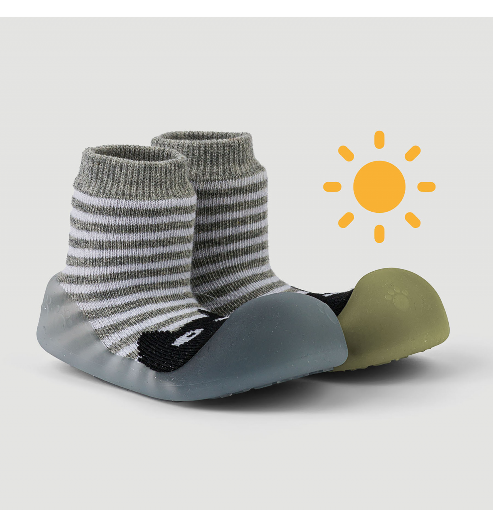 Fabricats en cotó amb sola de TPE, són transpirables, no tòxics i recomanats per podòlegs com la millor alternativa quan no és segur caminar descalç. El seu disseny permet que el bebè senti el terra amb la planta del peu, afavorint el seu equilibri i capacitat de reacció.