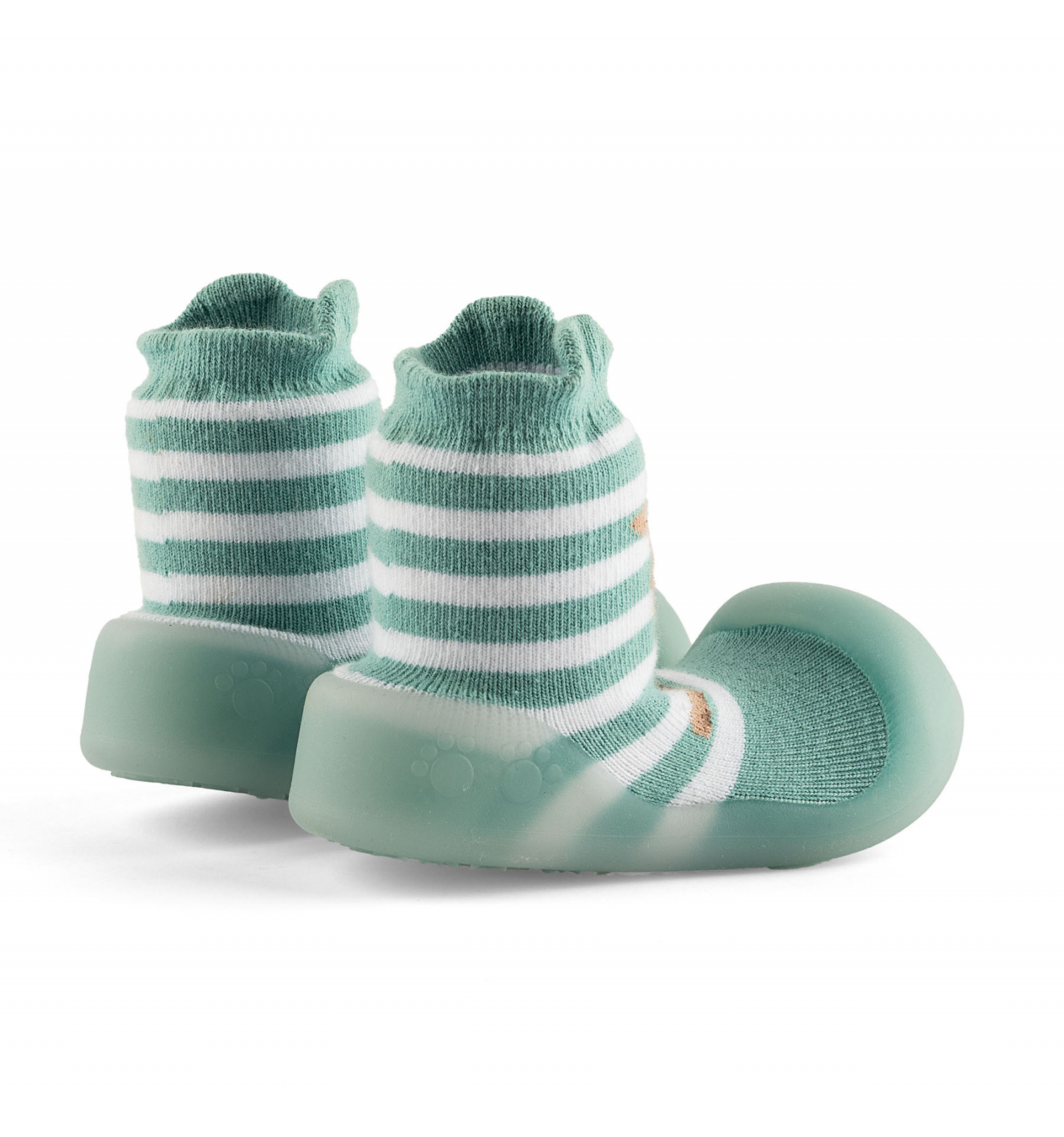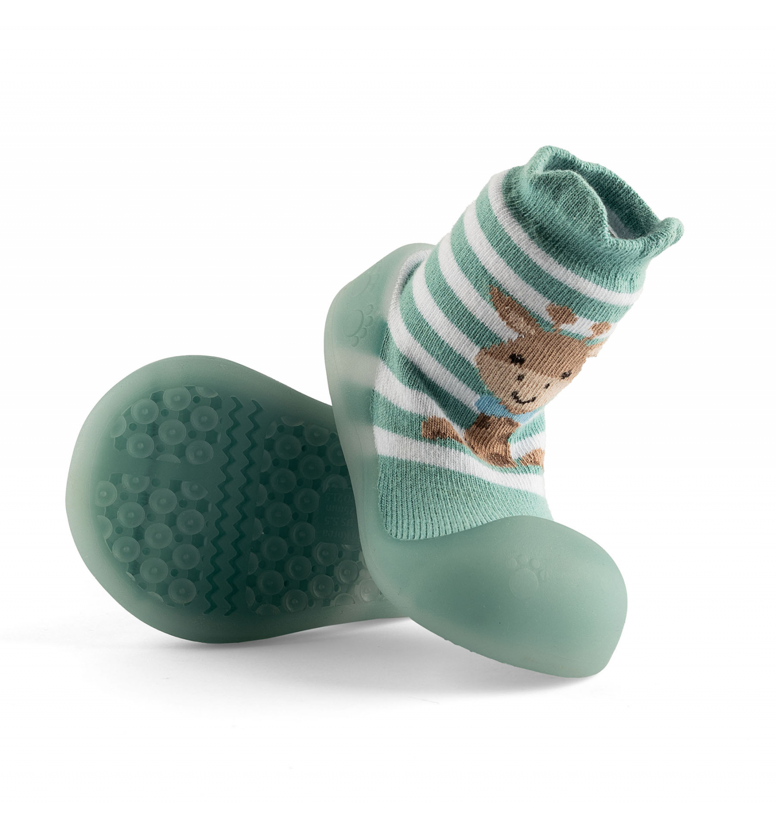 Fabricats en cotó amb sola de TPE, són transpirables, no tòxics i recomanats per podòlegs com la millor alternativa quan no és segur caminar descalç. El seu disseny permet que el bebè senti el terra amb la planta del peu, afavorint el seu equilibri i capacitat de reacció.