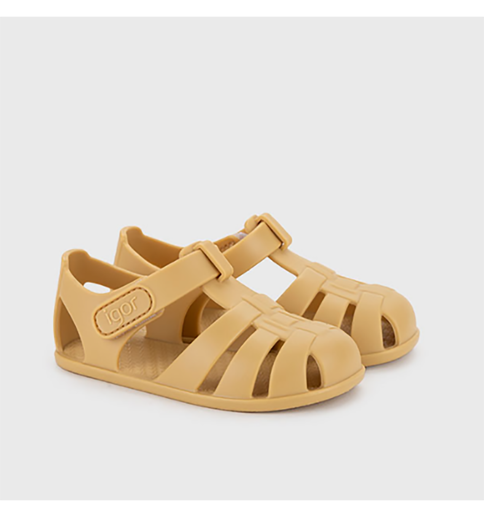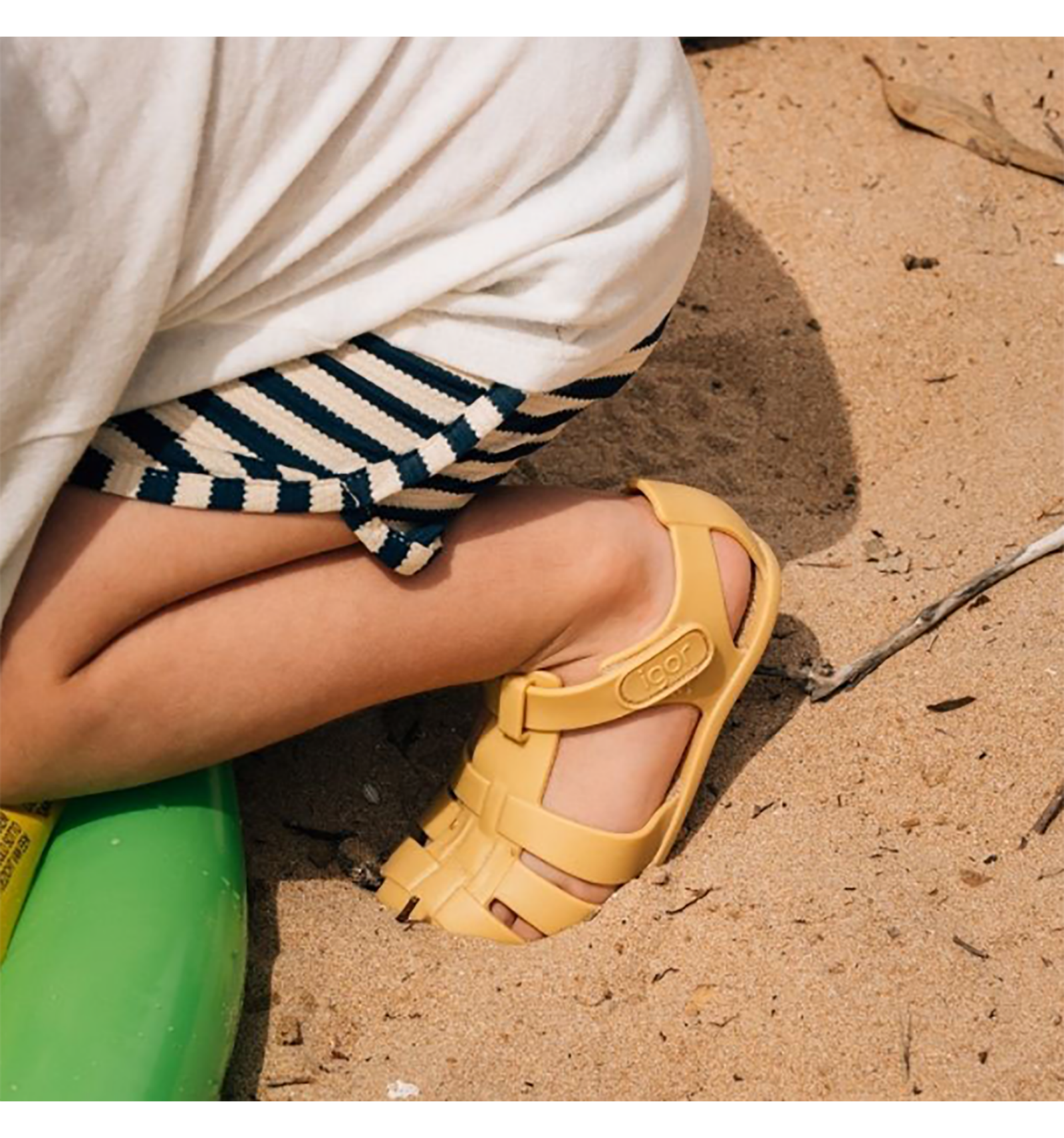 Sandàlies barefoot medium en color Dijon, flexible, toveta i amb zero drop. Feta amb almenys un 50% de PVC reciclat lliure de ftalats. Amb tancament adherent, per a peus lliures i protegits. Ideal per a gaudir de l'estiu.