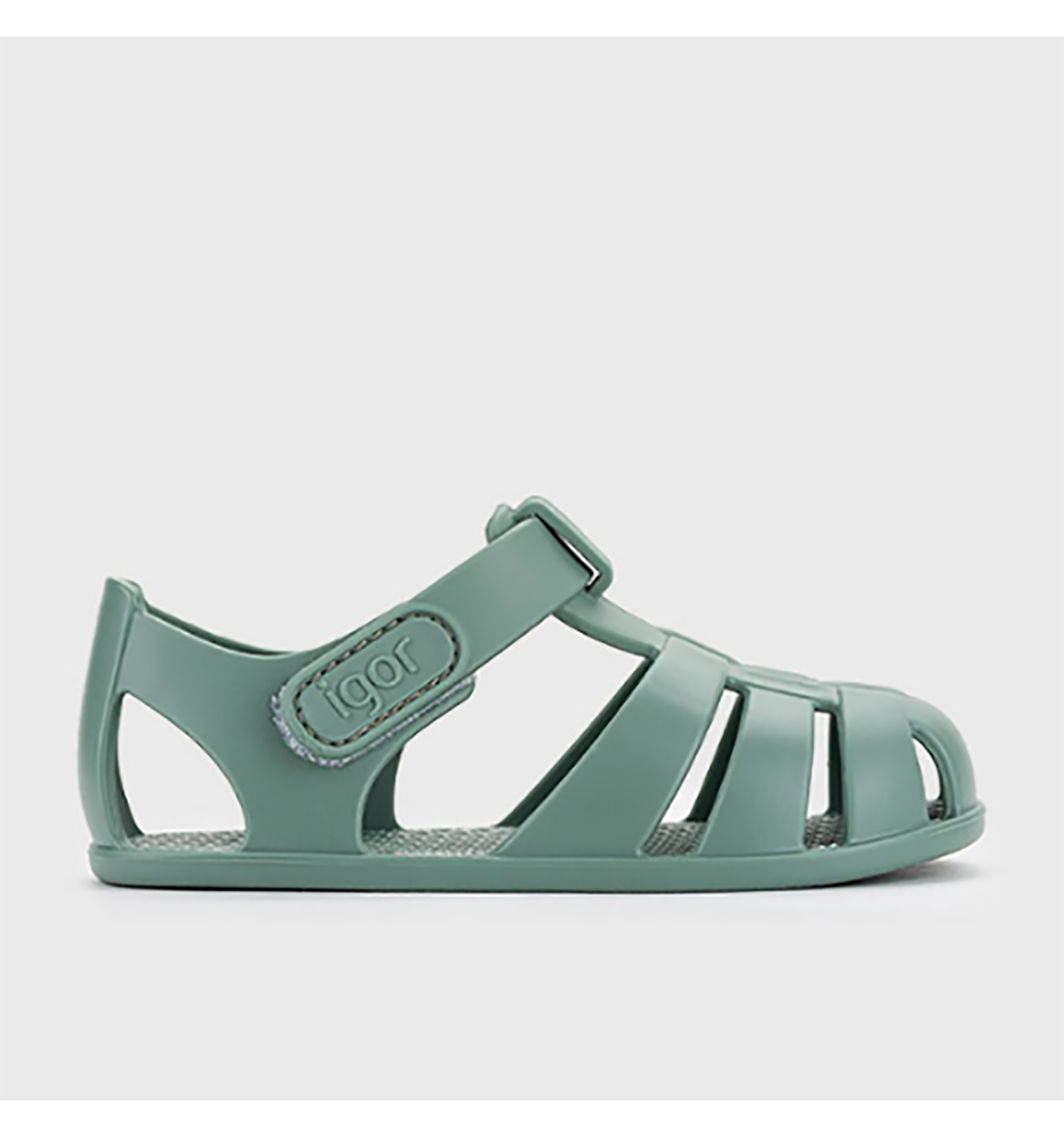 Sandàlies barefoot medium en color Verd, flexible, toveta i amb zero drop. Feta amb almenys un 50% de PVC reciclat lliure de ftalats. Amb tancament adherent, per a peus lliures i protegits. Ideal per a gaudir de l'estiu.