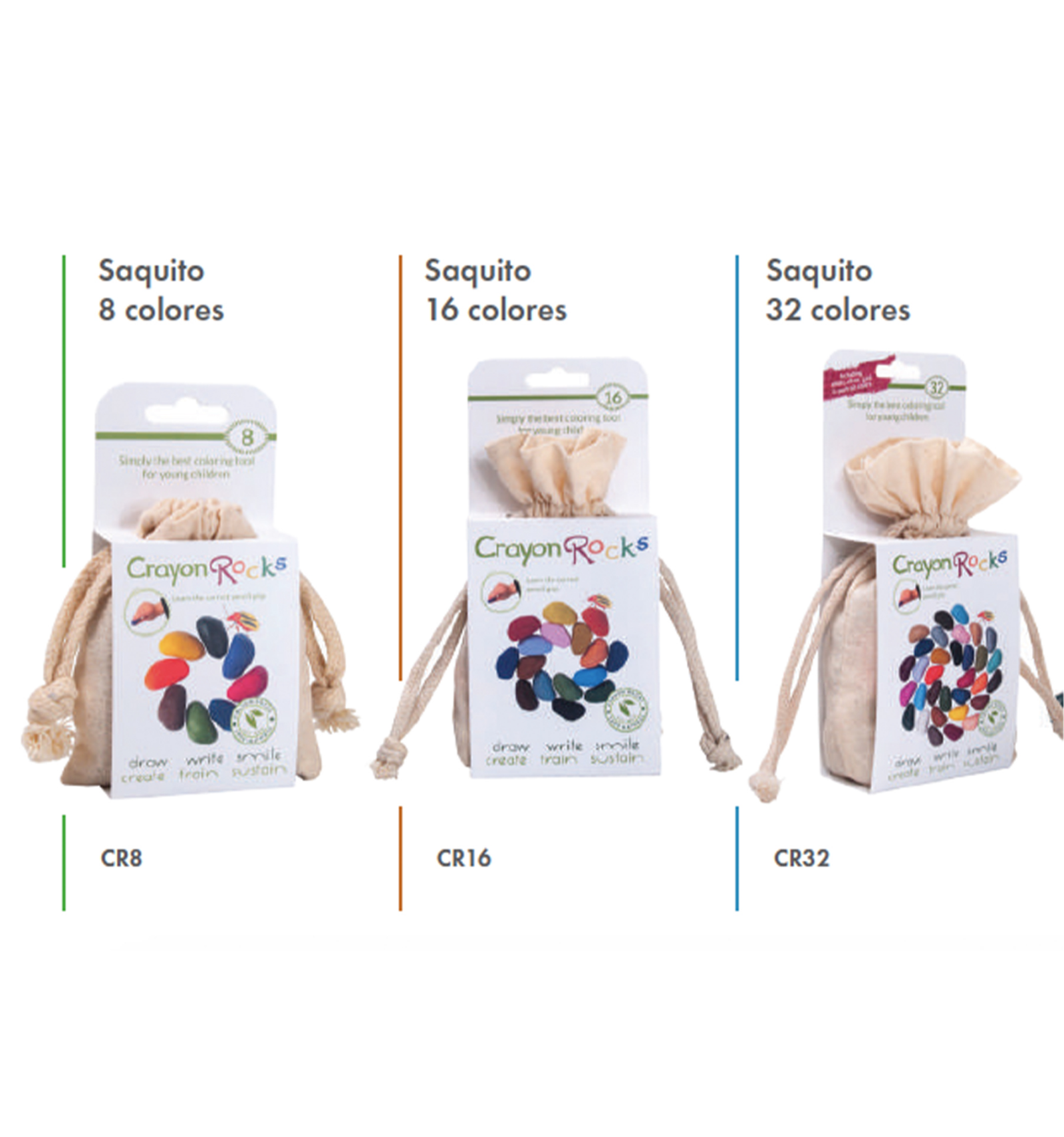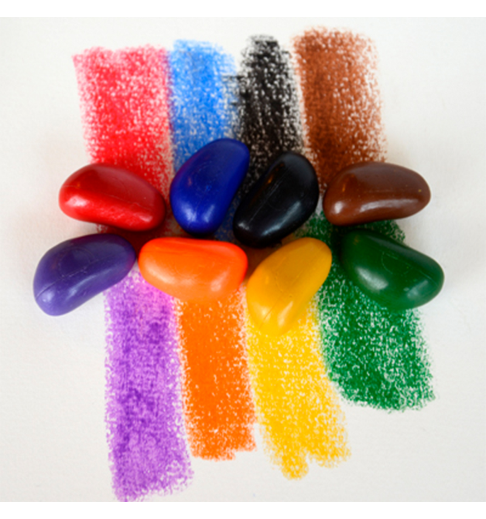 Els Crayon Rocks són llapis de colors a base de soia natural conreada als EUA i acolorides amb pigments minerals naturals.