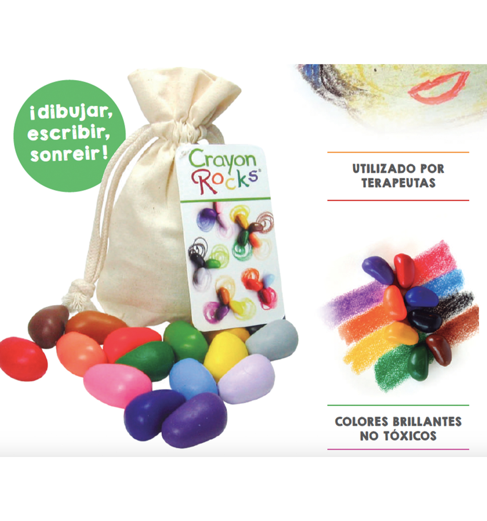 Els millors llapis perquè pintin els nens. Els Crayon Rocks són llapis de colors a base de soia natural conreada als EUA i acolorits amb pigments minerals naturals. No taquen la roba ni les mans. Ideals per a desenvolupar la motricitat fina, perquè s'agafen de forma correcta, millor que els llapis tradicionals. Aptes per a destres i esquerrans.
