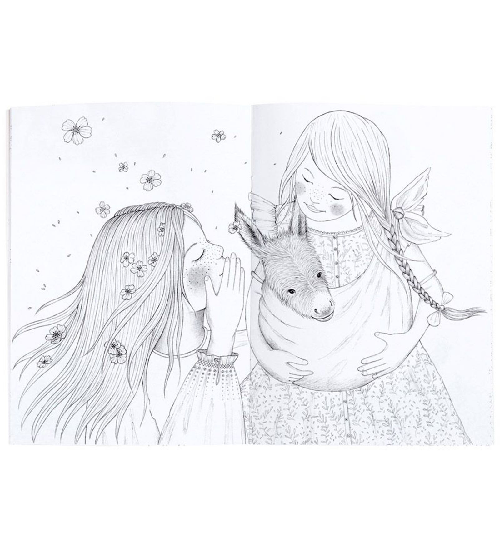 Un bell quadern per acolorir. Aquesta llibreta infantil conté 36 pàgines de dibuixos d'estil vintage amb el dolç univers de les nines Rosalies de Moulin Roty. Dissenyat per Cécile Blinderman. Dimensions quadern: 20 x 28 cm. A partir de 3 anys.