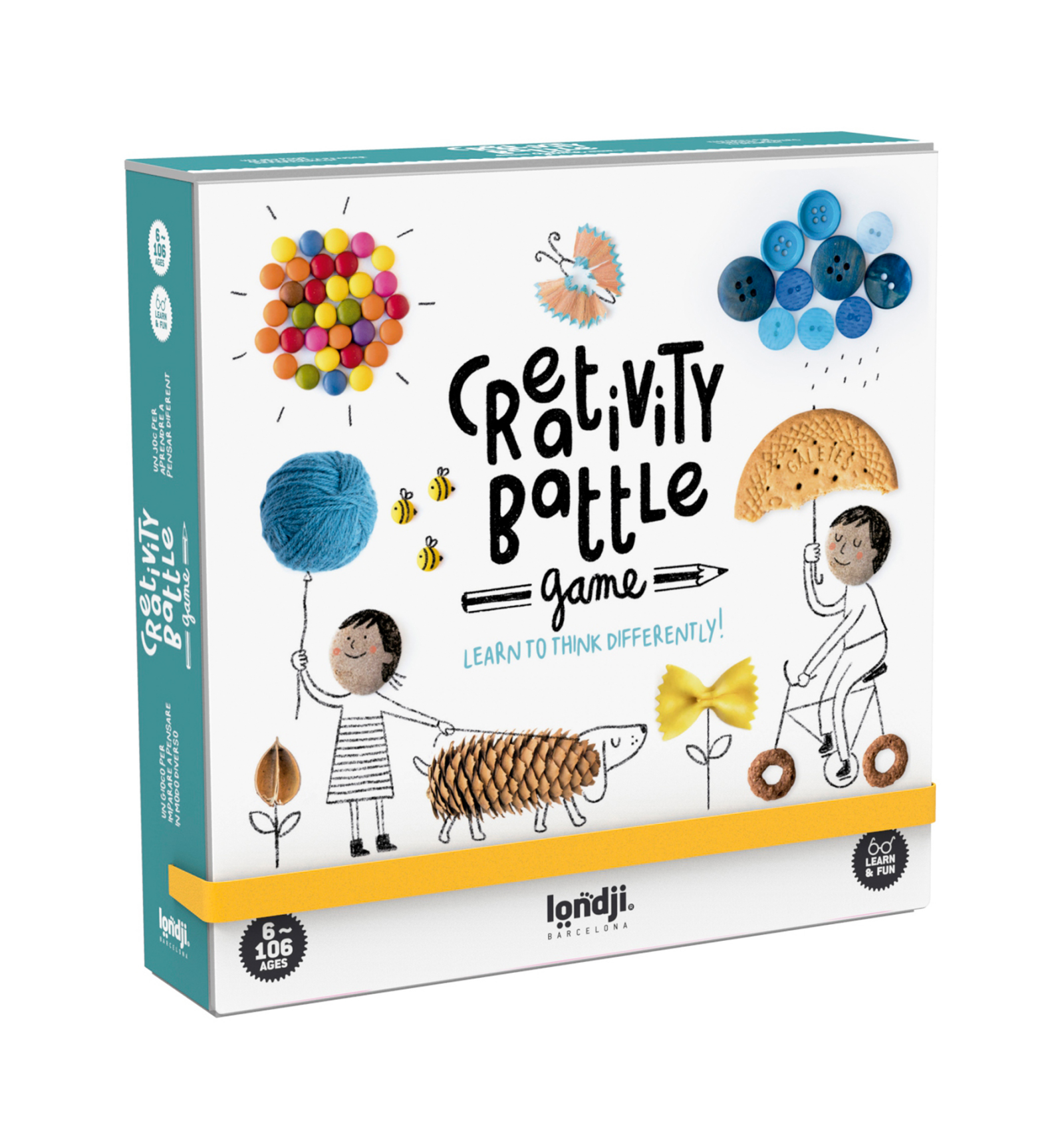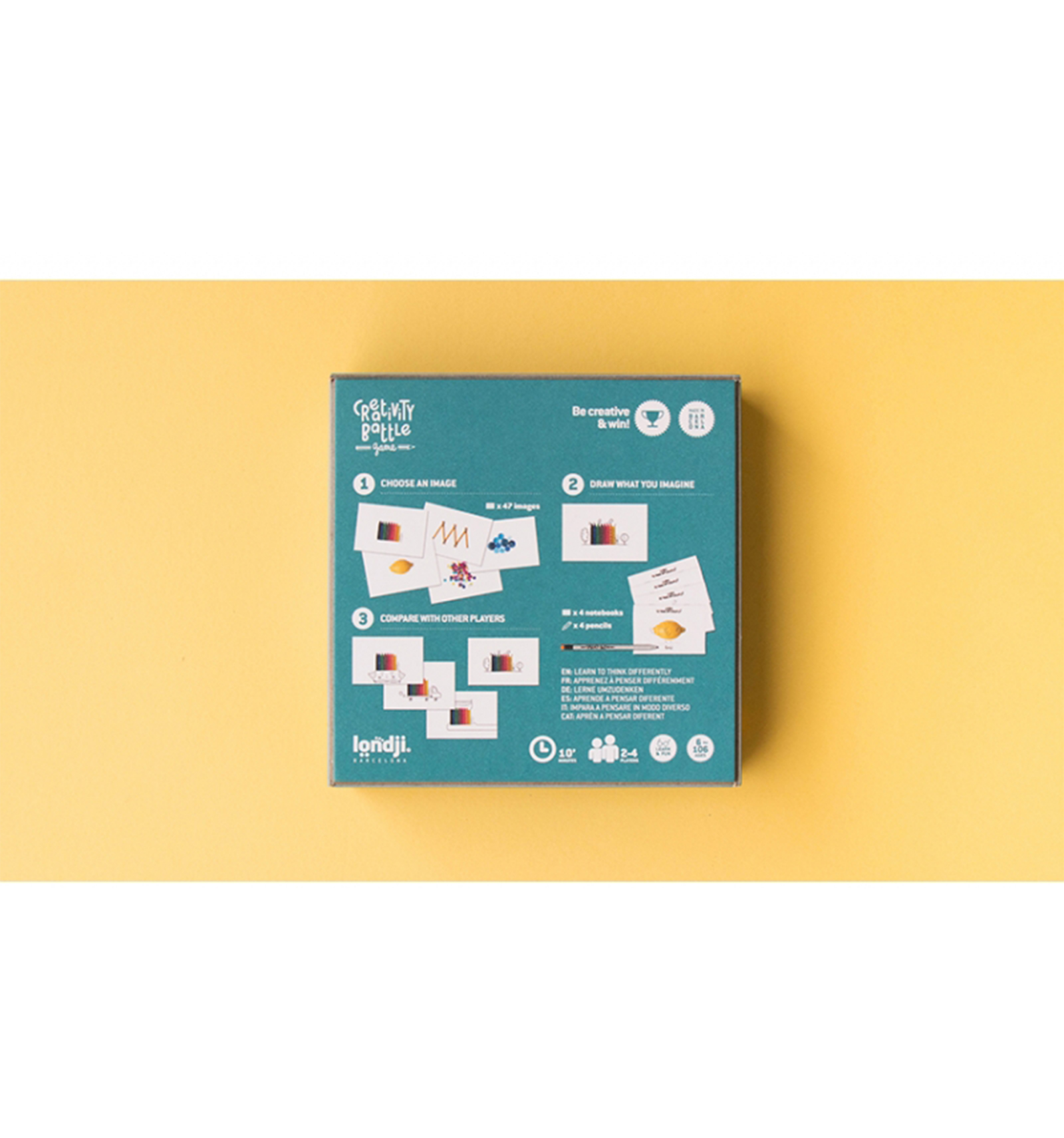 Un joc per a aprendre a pensar diferent. Estimula la creativitat amb aquest joc on es creen dibuixos partint de fotografies d'objectes. Guanya el jugador més creatiu. 100 peces. Mides capsa: 16,5 x 16,5 x 5,2 cm. Per a nens i nenes de 6 a 106 anys.