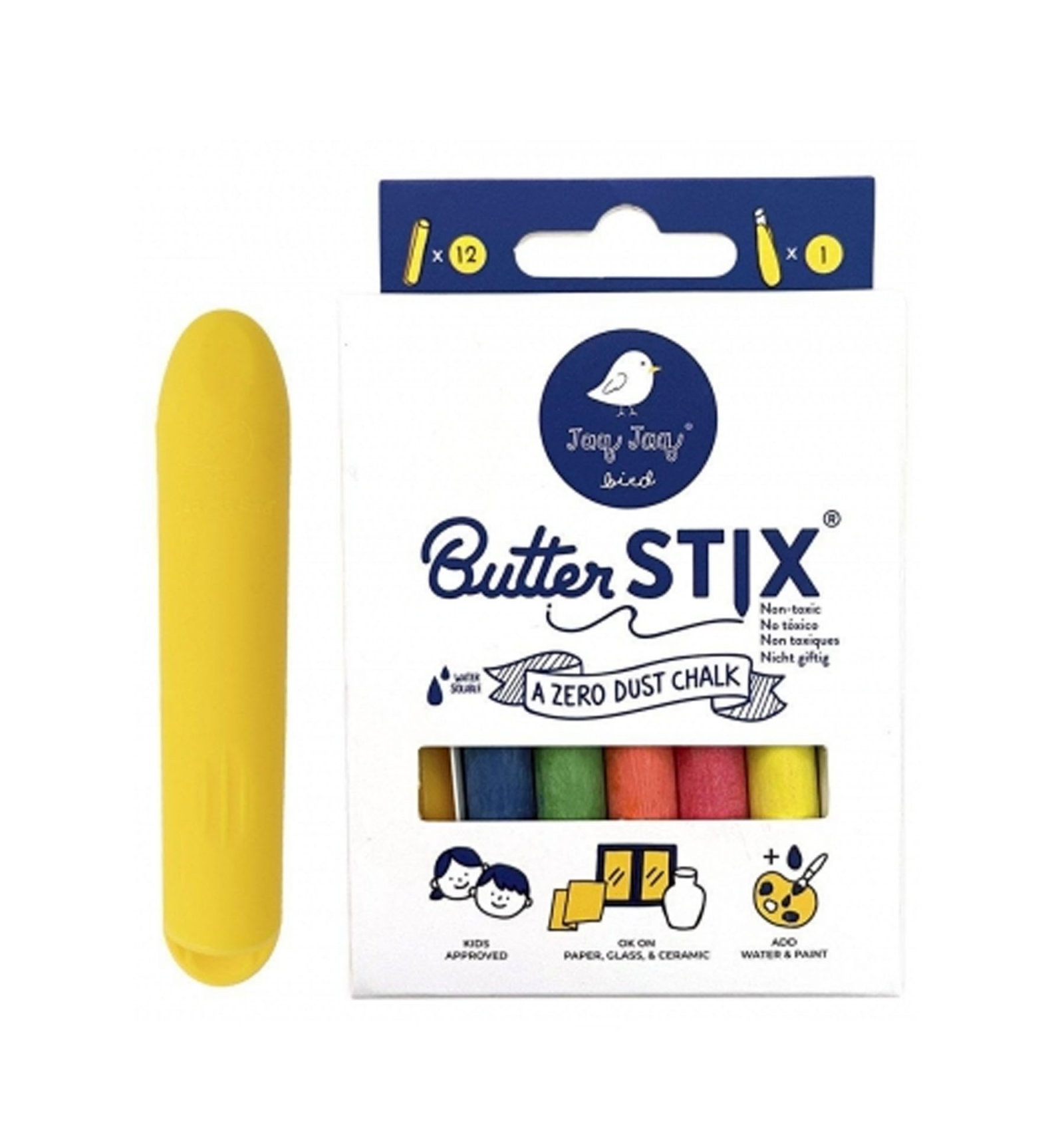 Creacions artístiques sense pols. Uns guixos per a la pissarra, les parets, o qualsevol suerficie no porosa. Es netegen fàcilment amb un drap humit i a tornar a començar. Inclou 16 guixos (2 unitats de cadascun dels 8 colors) i un portaguix. No tòxiques. Lliures de ftalats, PVC i BPA. Recomanades a partir dels 3 anys.