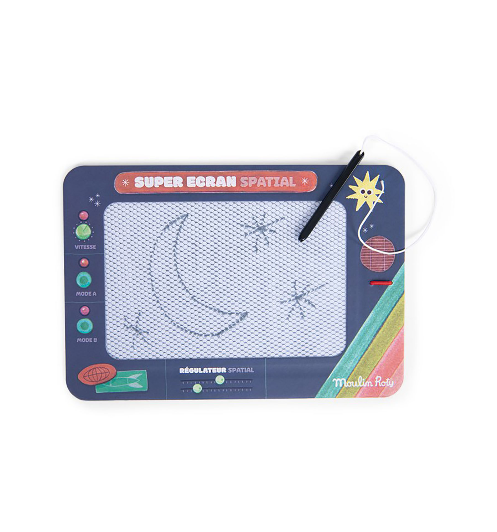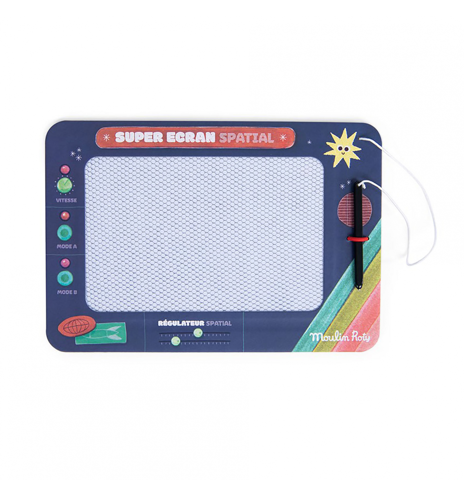 Un clàssic que no falla. La pissarra magnètica amb la qual ja jugàvem els pares abans de les pantalles digitals. Una pissarra d'aspecte retro per a escriure, dibuixar,... i esborrar amb uns copets en la part posterior! Hores de diversió sense piles ni bateries. Des dels 3 anys. Mides: 24 x 16,5 cm.