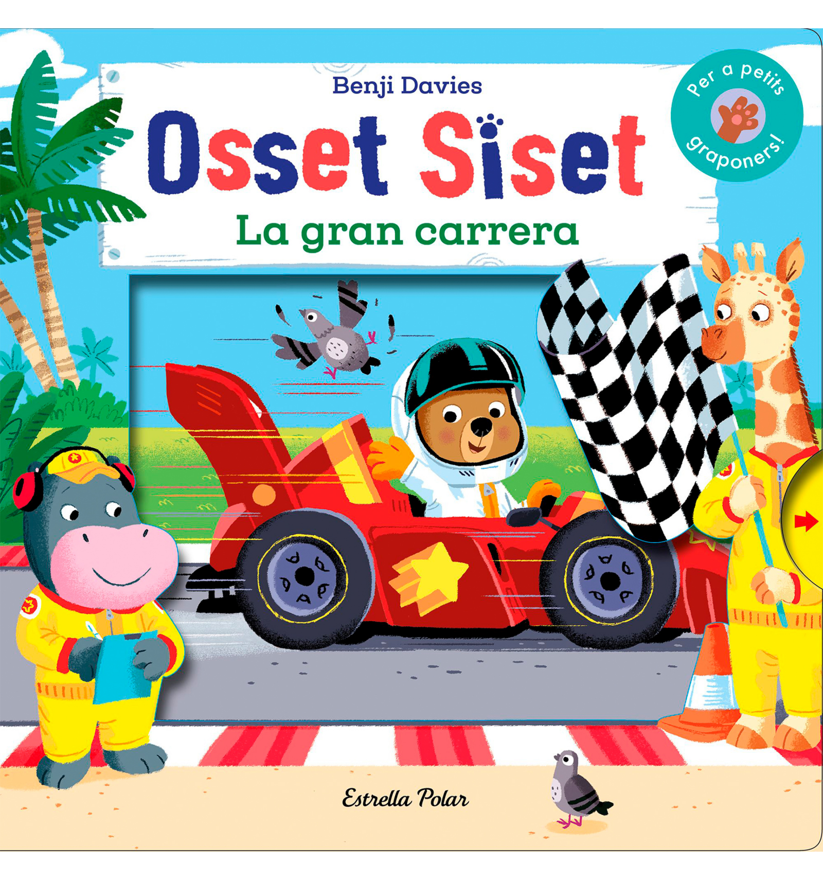 L'osset Siset és un gran aficionat als esports de velocitat i aquesta vegada competirà en una gran carrera, aconseguirà arribar el primer? Descobriu-ho en aquest divertidíssim llibre amb mecanismes per a aixecar i estirar. Cartó. 10 pàgines. A partir d'1 any.