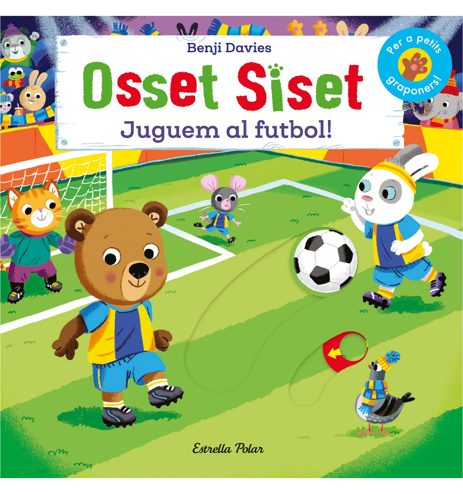 A l'osset Sisset li encanta el futbol i avui jugarà un partit. Poseu-vos les botes, sortiu al camp i marqueu un gol amb aquest divertidíssim llibre amb mecanismes per a aixecar i estirar. Cartró. 10 pàgines. A partir d'1 any.
