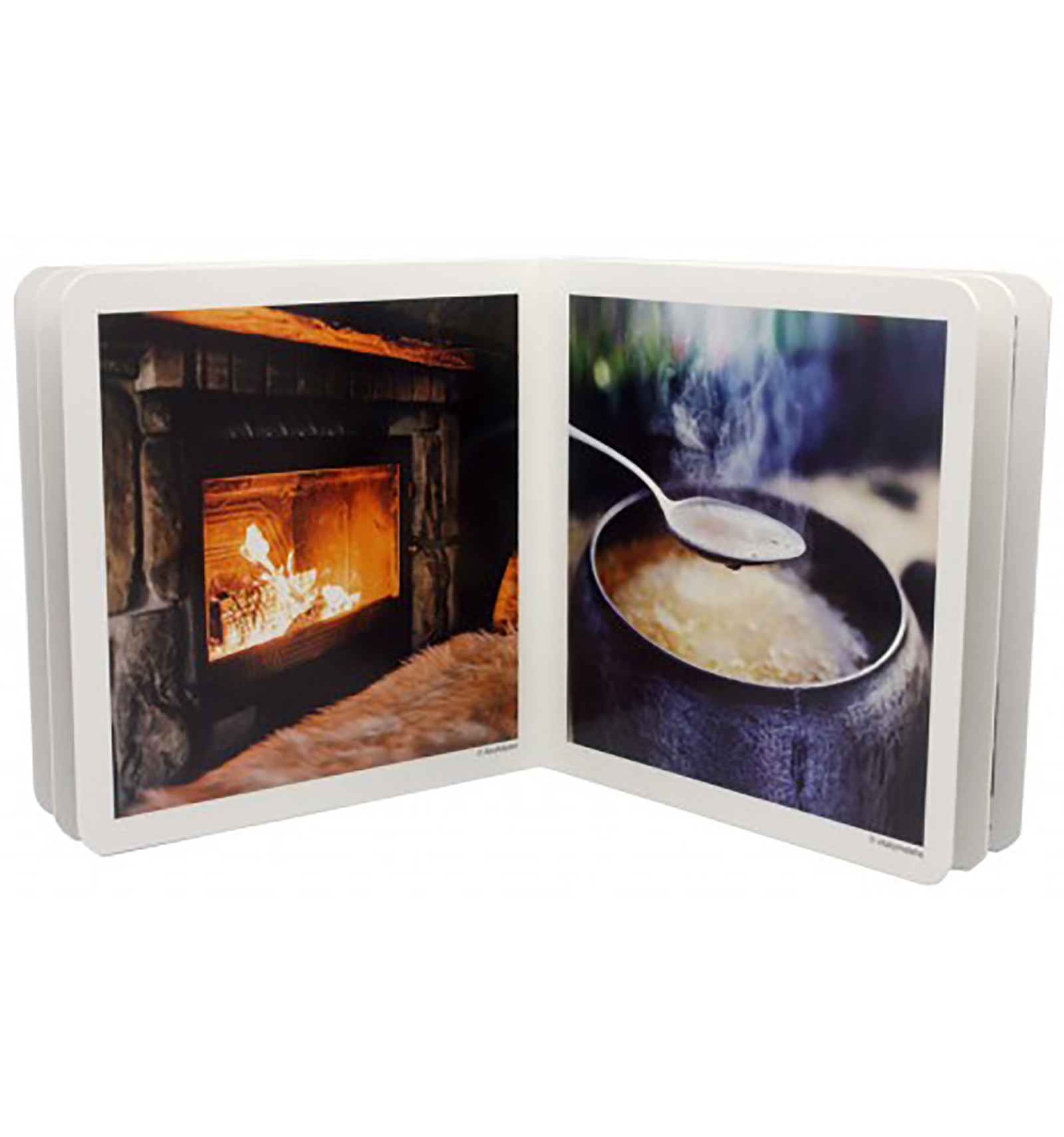 Llibre de fotografies relacionades amb l'hivern. Perquè el teu fill/a aprengui el significat de les estacions de l'any. Inclou fotografies de paisatges nevats, animals hivernant, xemeneia amb foc, sopa calenta, roba d'hivern, ninot de neu i nens jugant amb la neu.