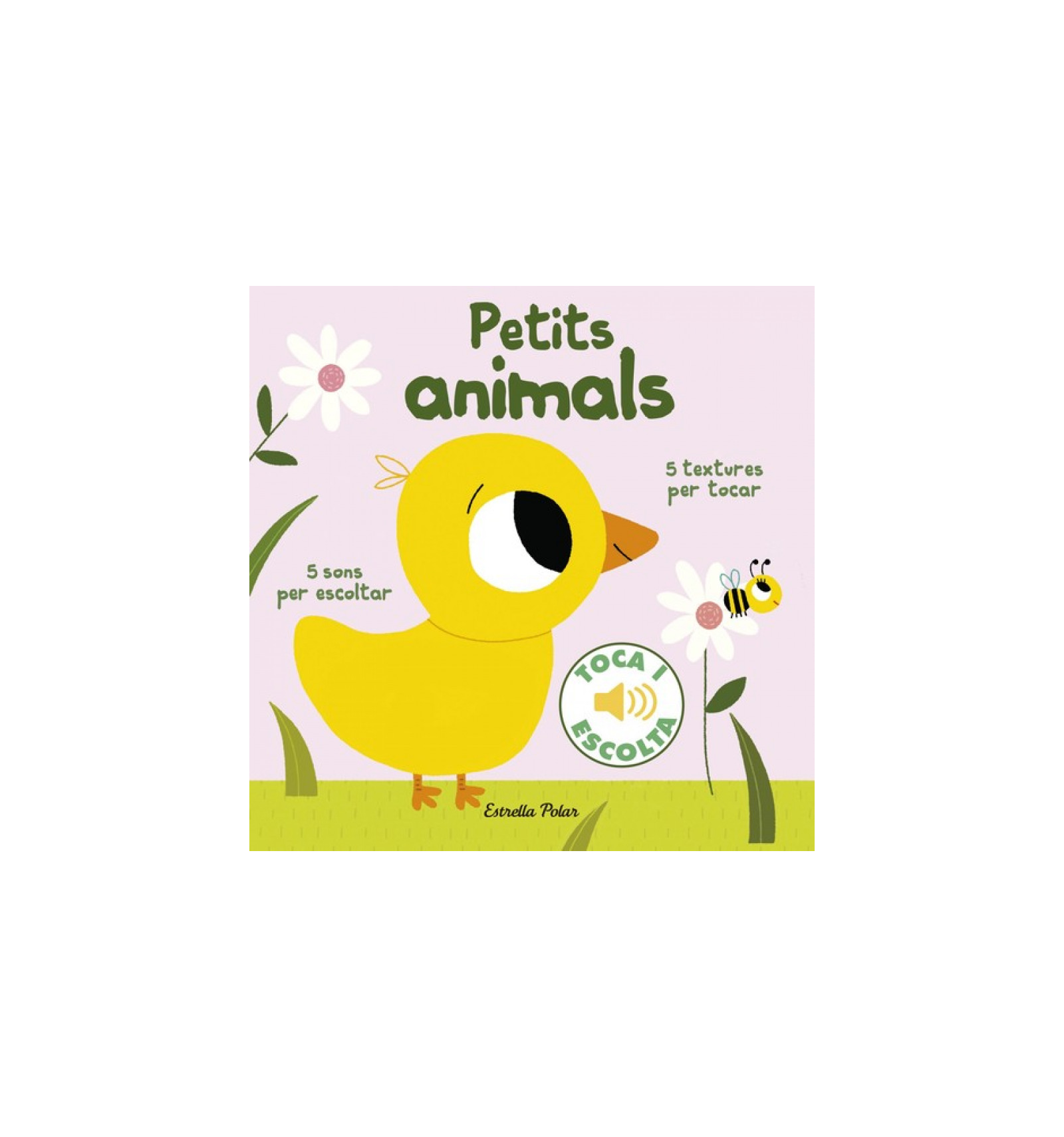 Petits animals. Toca i escolta d’Estrella Polar és un llibre interactiu perfecte per a l’estimulació sensorial dels més petits. Amb il·lustracions grans de Marion Billet, aquest llibre combina textures suaus i sons d’alta qualitat per ajudar els nadons a reconèixer i aprendre sobre cinc animals domèstics: el pollet, el gat, la granota, el peix i el gos.