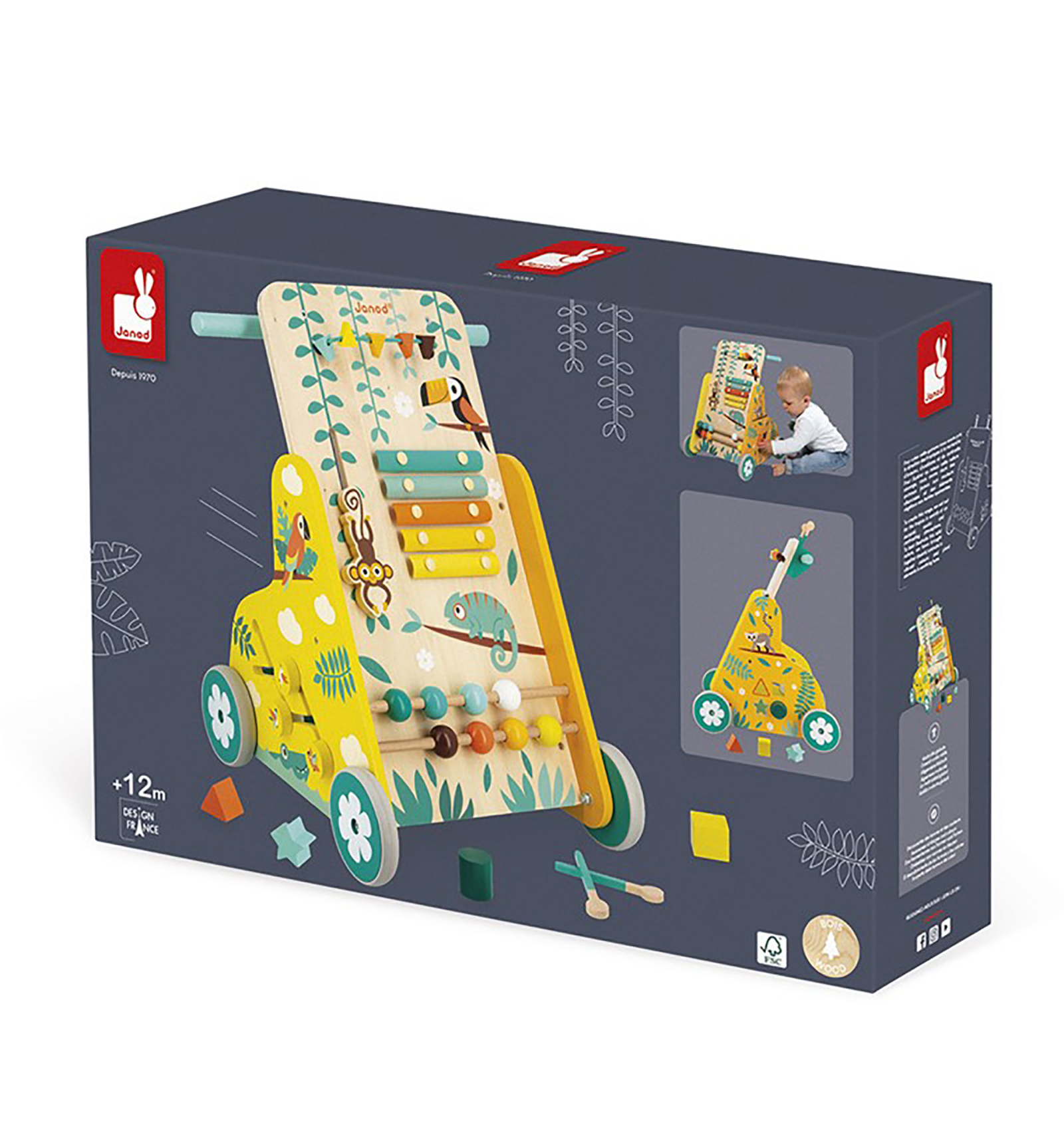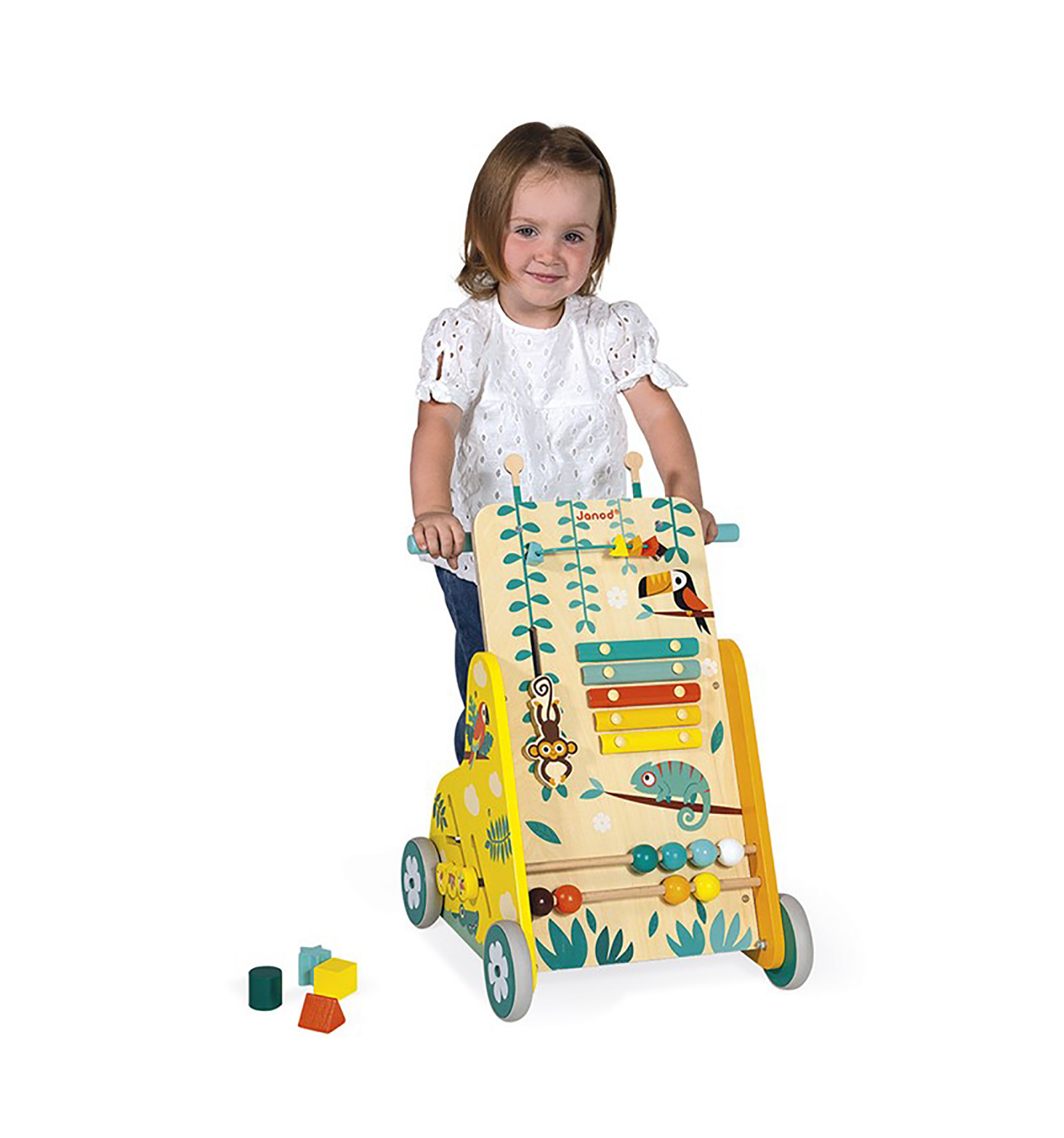 Joc, diversió i moviment, perquè els seus primers passos siguin divertits i instructius. Una joguina de fusta amb molts jocs divertits i diversos. Ideal per a fomentar la confiança, entrenar les habilitats cognitives, descobrir el món, reconèixer formes, aprendre la resolució de problemes,...