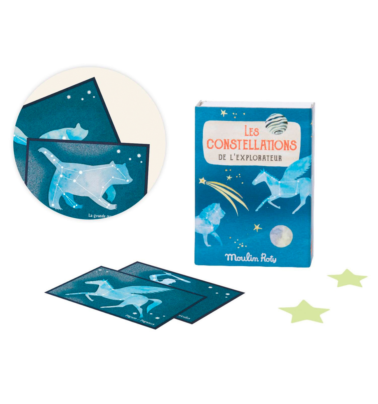 30 estrelles adhesives i 10 targetes amb constel·lacions per a reproduir.