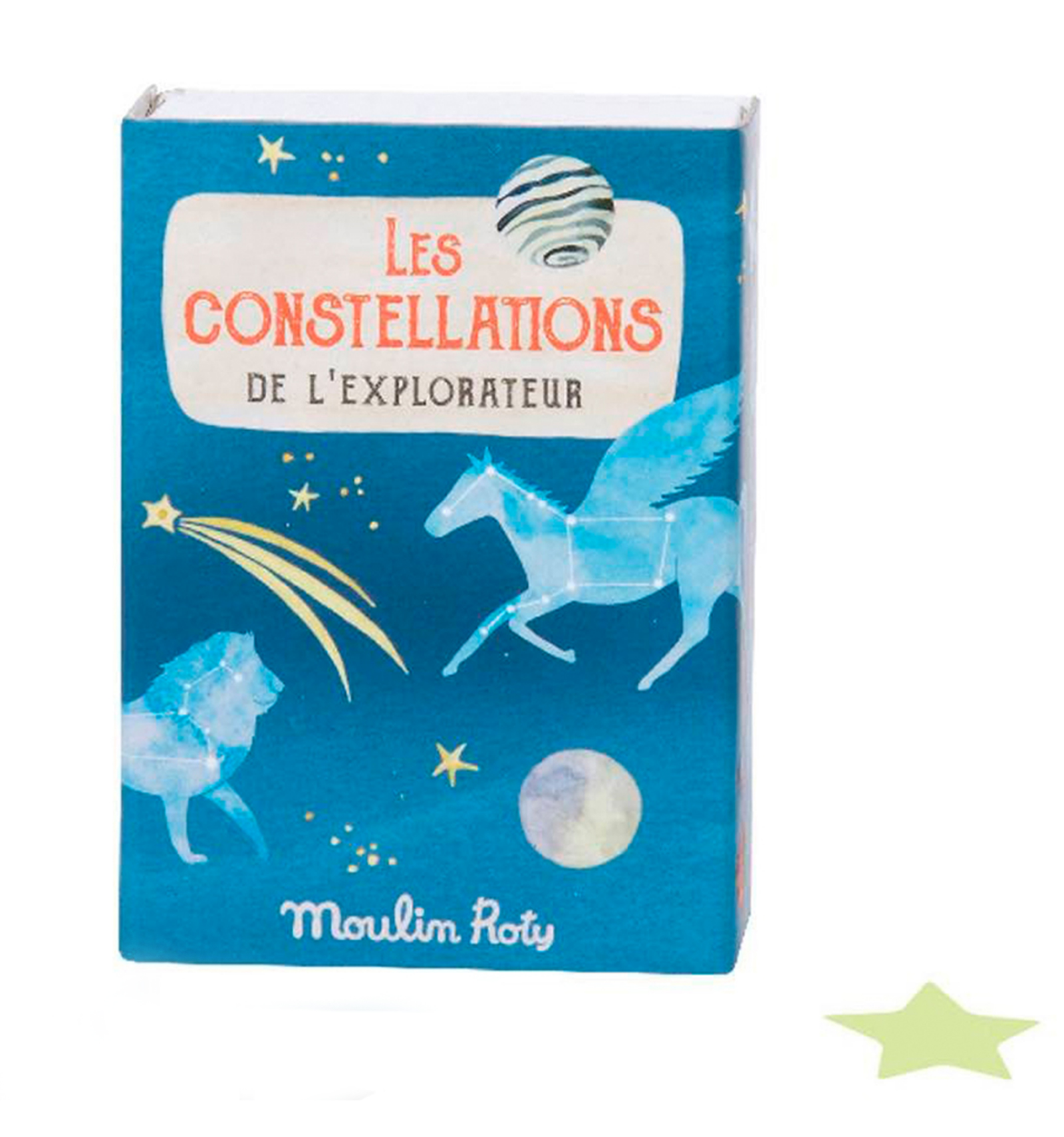 L'univers a la seva habitació. Set amb 30 estrelles fosforescents i 10 targetes amb diferents constel·lacions com l'Óssa major, l'Óssa Menor,..., per a reproduir-les en el sostre, la paret, o on vulgueu. Capseta de 9 x 6 cm.