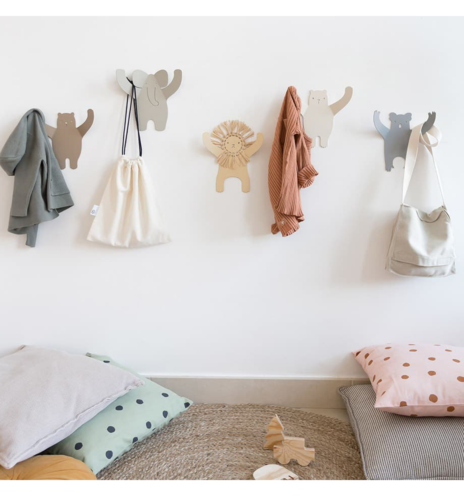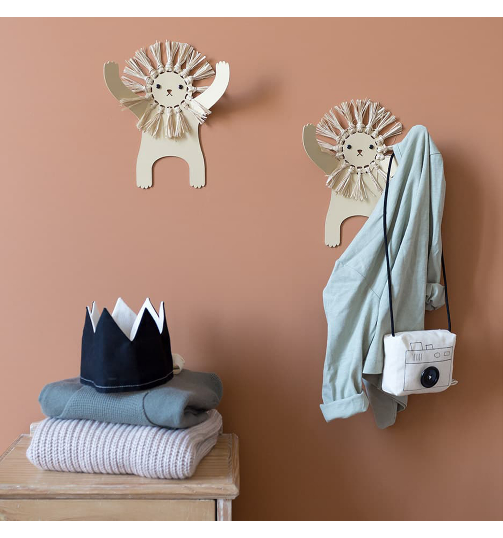 Un penjador salvatge! El complement perfecte per a donar-li un divertit toc d'estil a l'habitació de les criatures i tenir-ho tot ordenat. Fabricat en acer reciclat i lacat en color groc suau, amb una resistent capa de pintura al forn. Mides 21 x 18 cm.