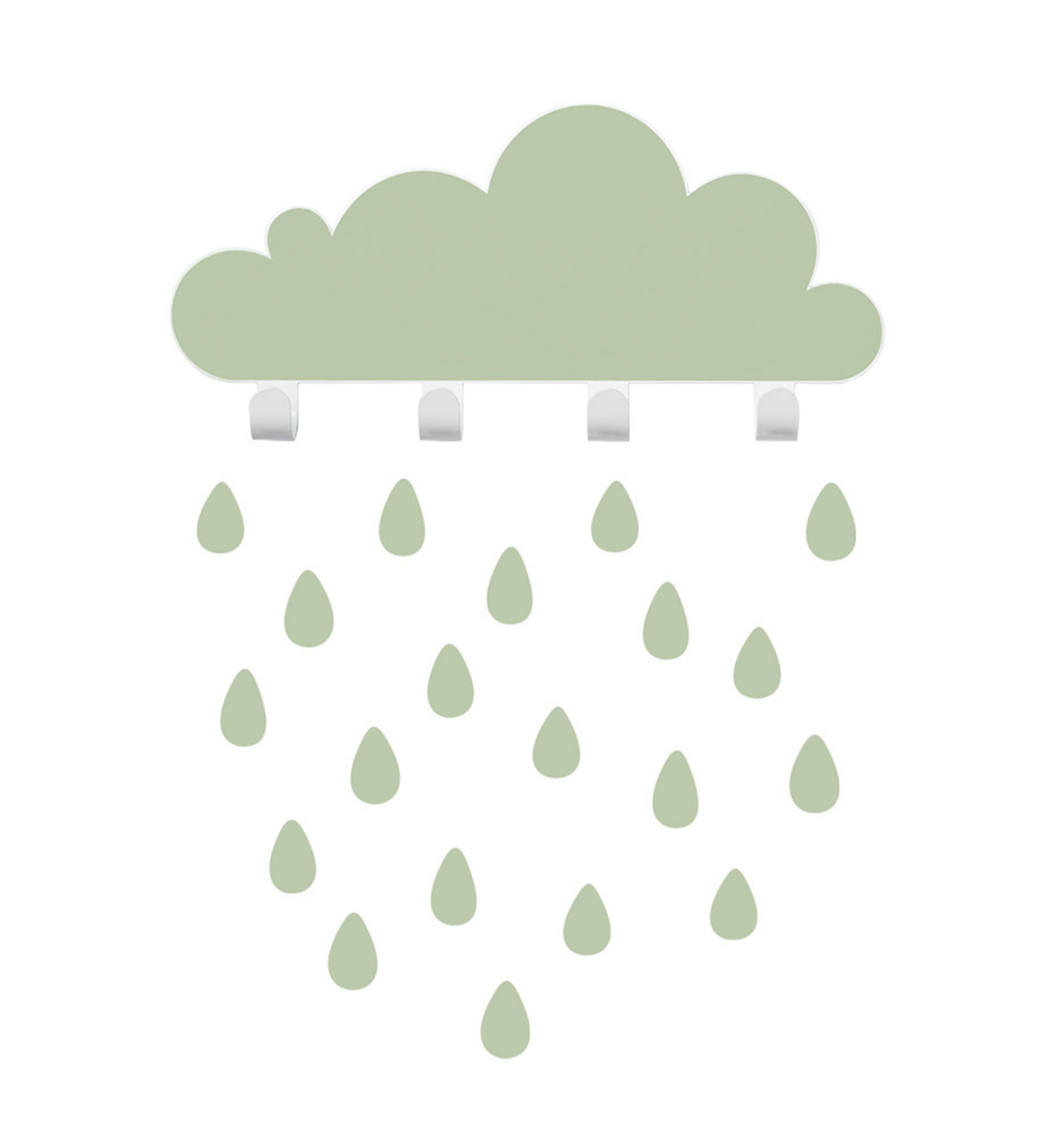 Un núvol per a penjar i decorar. Aquest penjador tan original de Tresxics està fabricat en metall reciclat, amb recobriment de pintura al forn molt resistent. Inclou la silueta magnètica en color verd i 20 adhesius de paret en forma de gotes de pluja, a més dels tacs i cargols per penjar-la. Mides 35 x 17 x 3 cm.