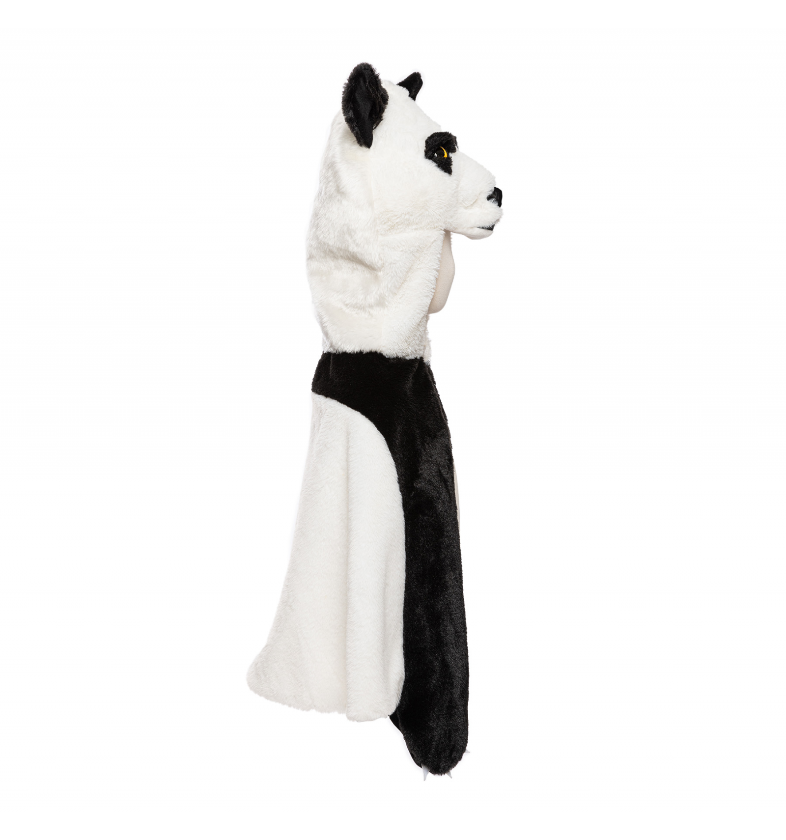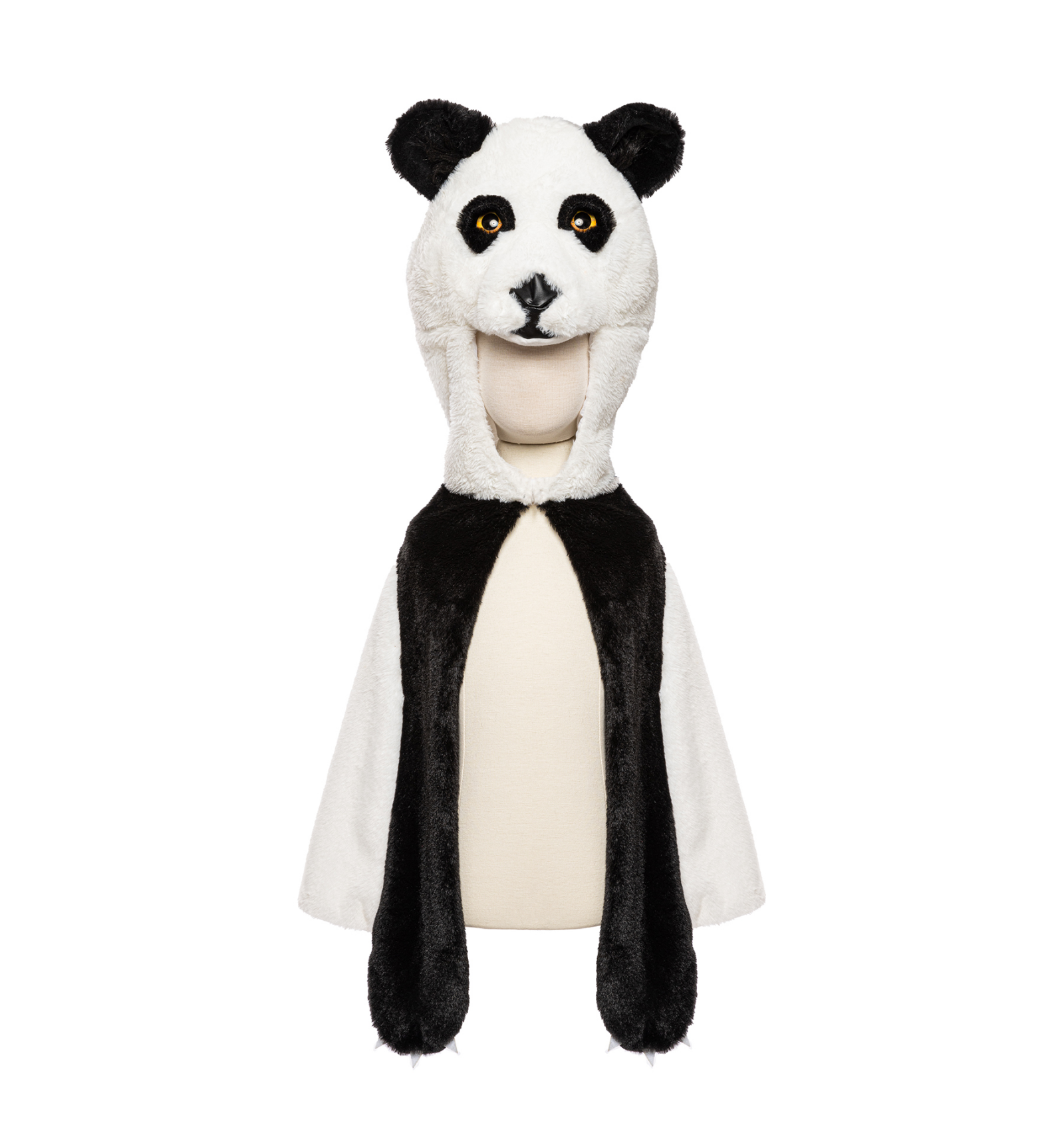 La capa d'abraçades de panda és l'accessori perfecte per a jocs plens d'imaginació i dolçor. Confeccionada en suau pell sintètica blanca i negra, embolica als petits en una càlida abraçada de panda. La caputxa inclou un cap i orelletes de panda de peluix que s'aixequen amb un encant irresistible. A més, les butxaques en forma de potetes són ideals per a mantenir les mans calentetes o portar petits tresors. Perfecte per a explorar, jugar i fondre cors!