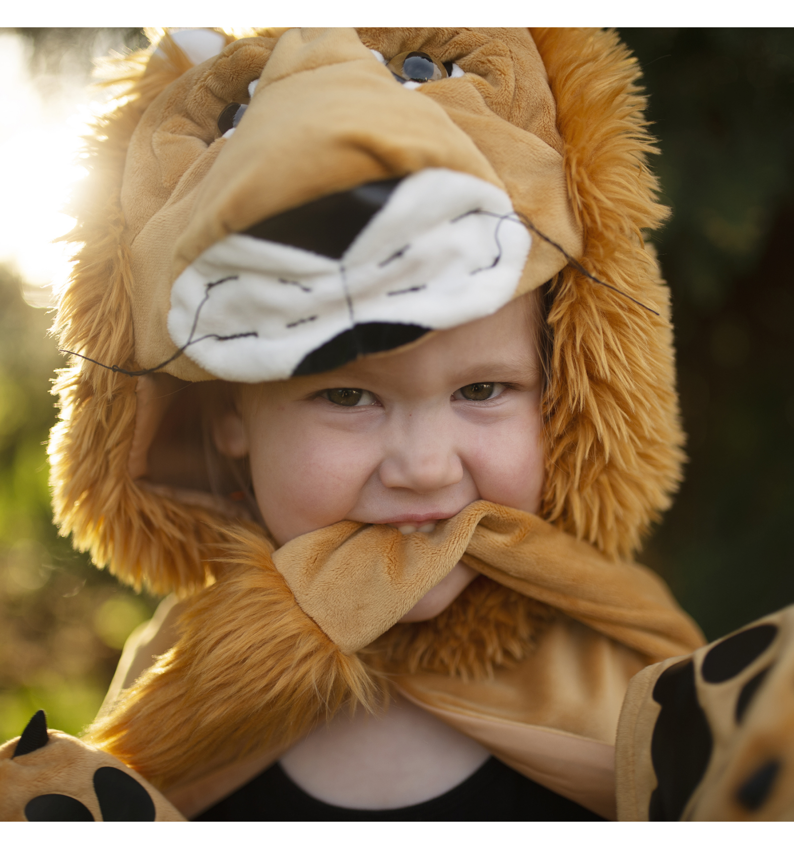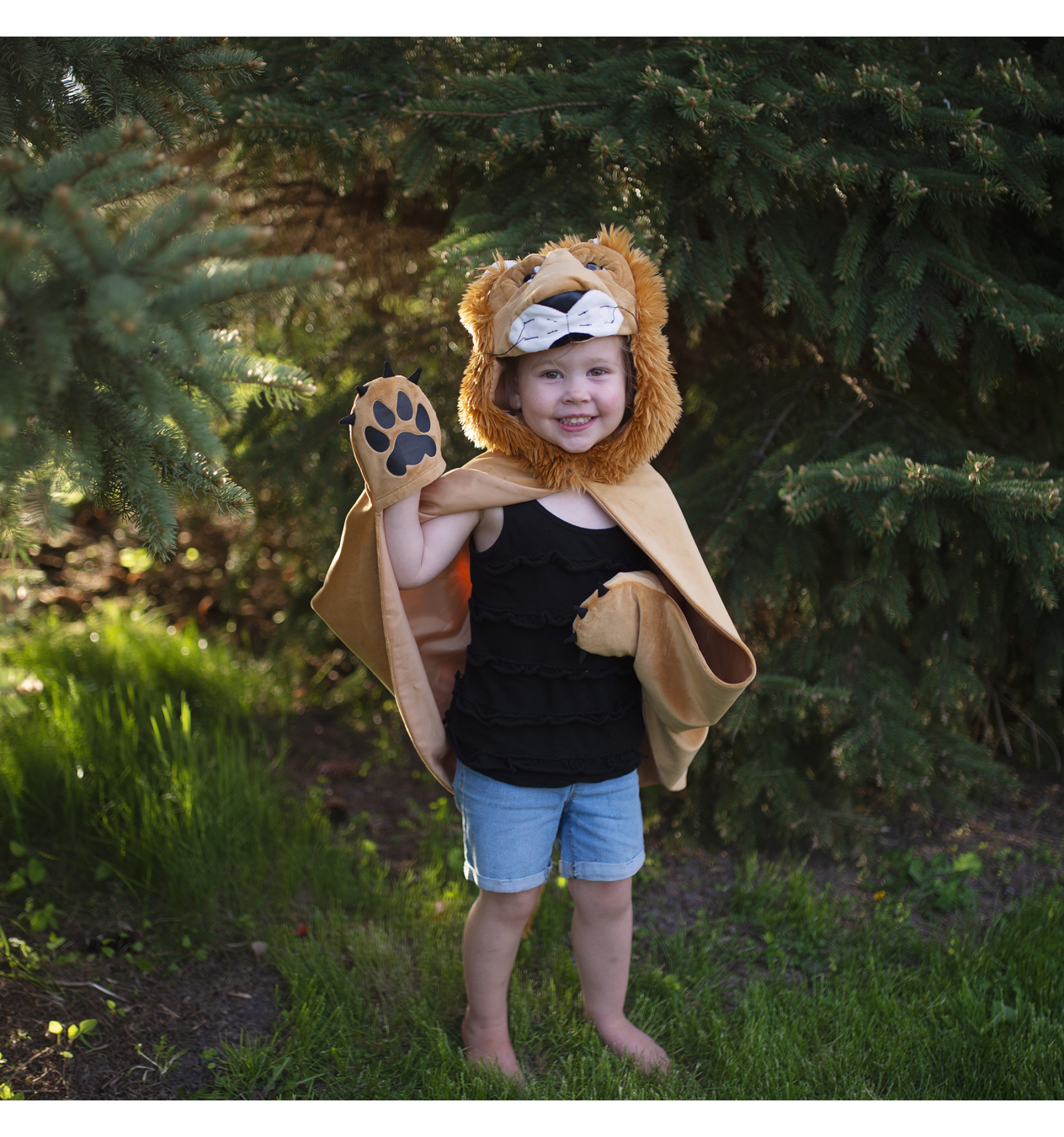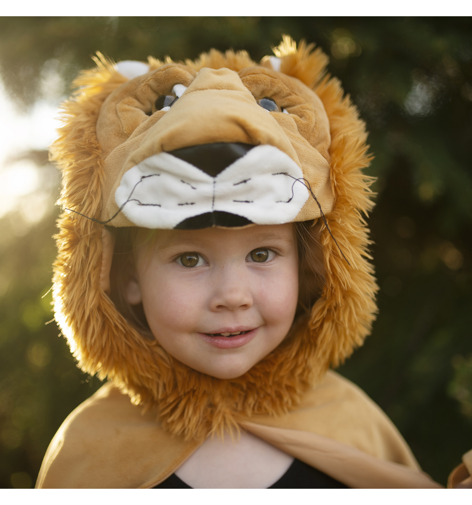 Prepara't per a governar la jungla! La nostra capa de lleó de conte de fades del bosc és suau i tendra, amb una caputxa de lleó i potes incorporades diversió per a una aparença encantadora i plena de diversió. Talla 2-3 anys.