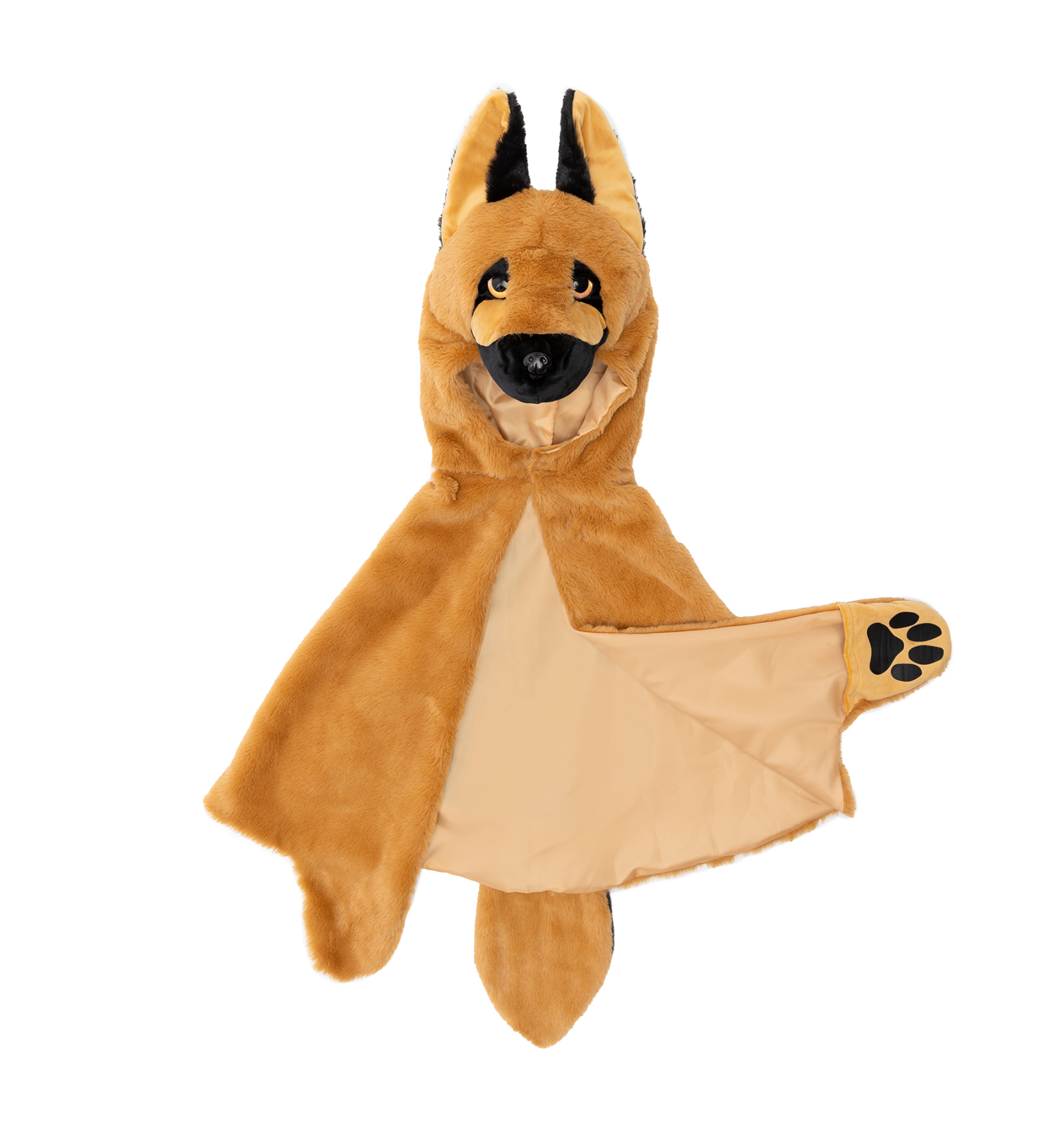 Caputxa amb cap i orelles de pastor alemany de peluix.