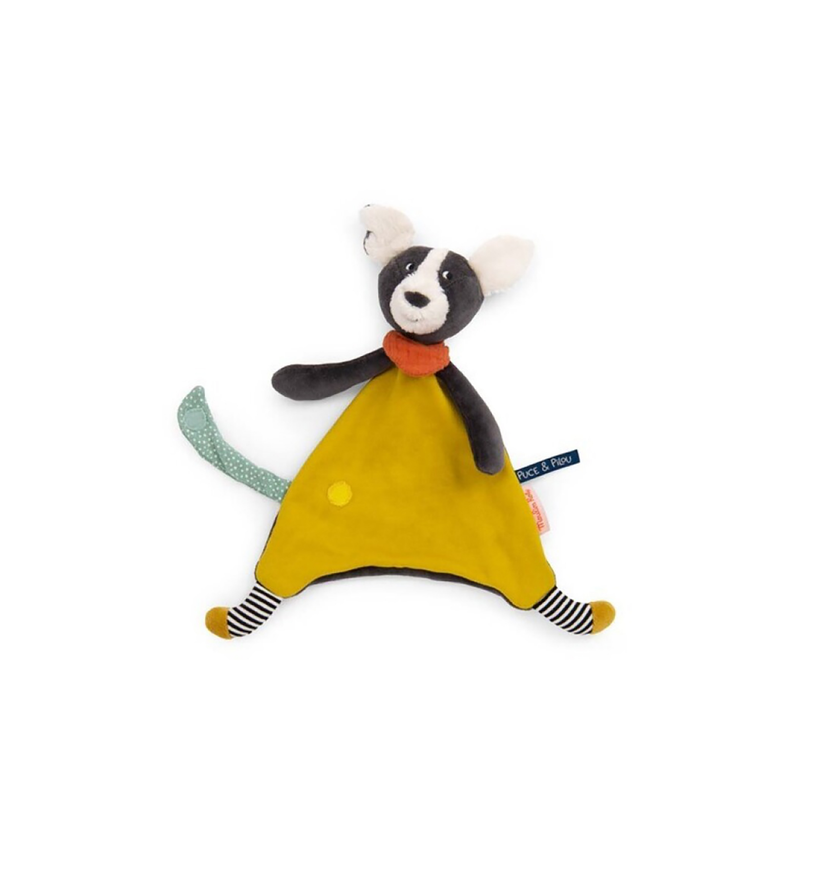 Aquest doudou de gosset groc de Moulin Roty és el company ideal per als primers mesos del teu nadó. La vostra textura suau i tova proporciona una sensació de confort i seguretat, convertint-lo en un adorable element d'aferrament per dormir o calmar-se.
