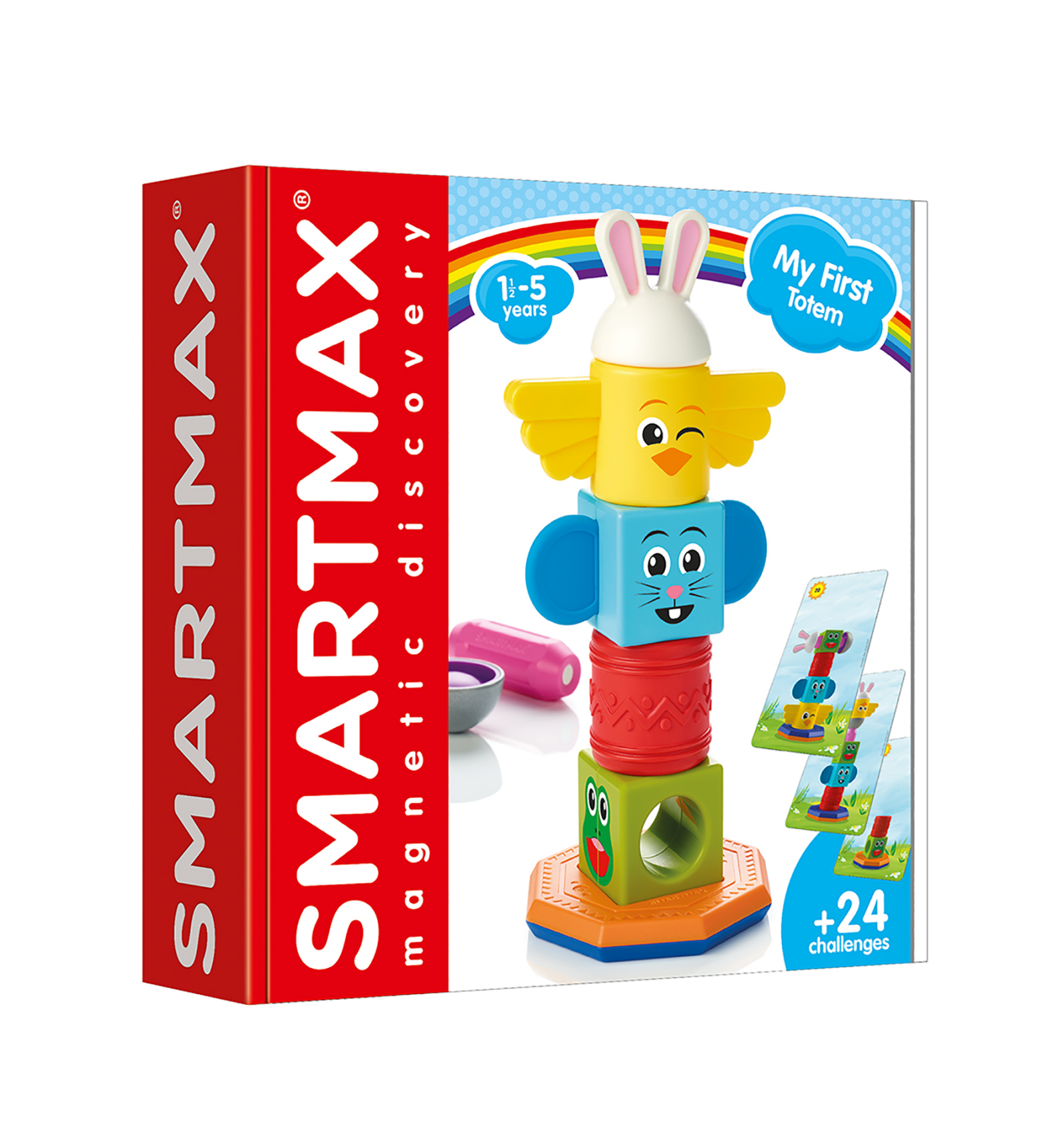 24 desafiaments de la construcció! My First Totem té 24 desafiaments de construcció. Amb figures magnètiques 100% compatibles amb altres productes SMARTMAX®. Permet als nens explorar el fascinant món del magnetisme d'una manera segura.