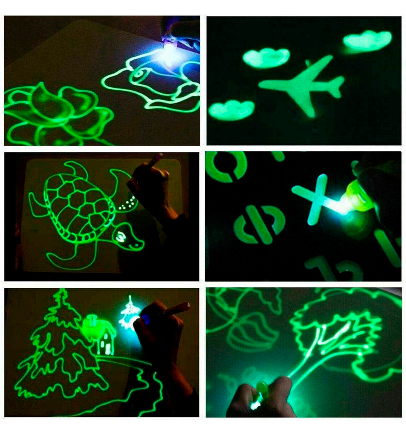 Per a dibuixar amb llum, millor en un lloc amb poca il·luminació, s'ha de pressionar el botó del llapis perquè emeti la llum, i la superfície fotosensible de la pissarra la convertirà en punts fotoluminiscents.