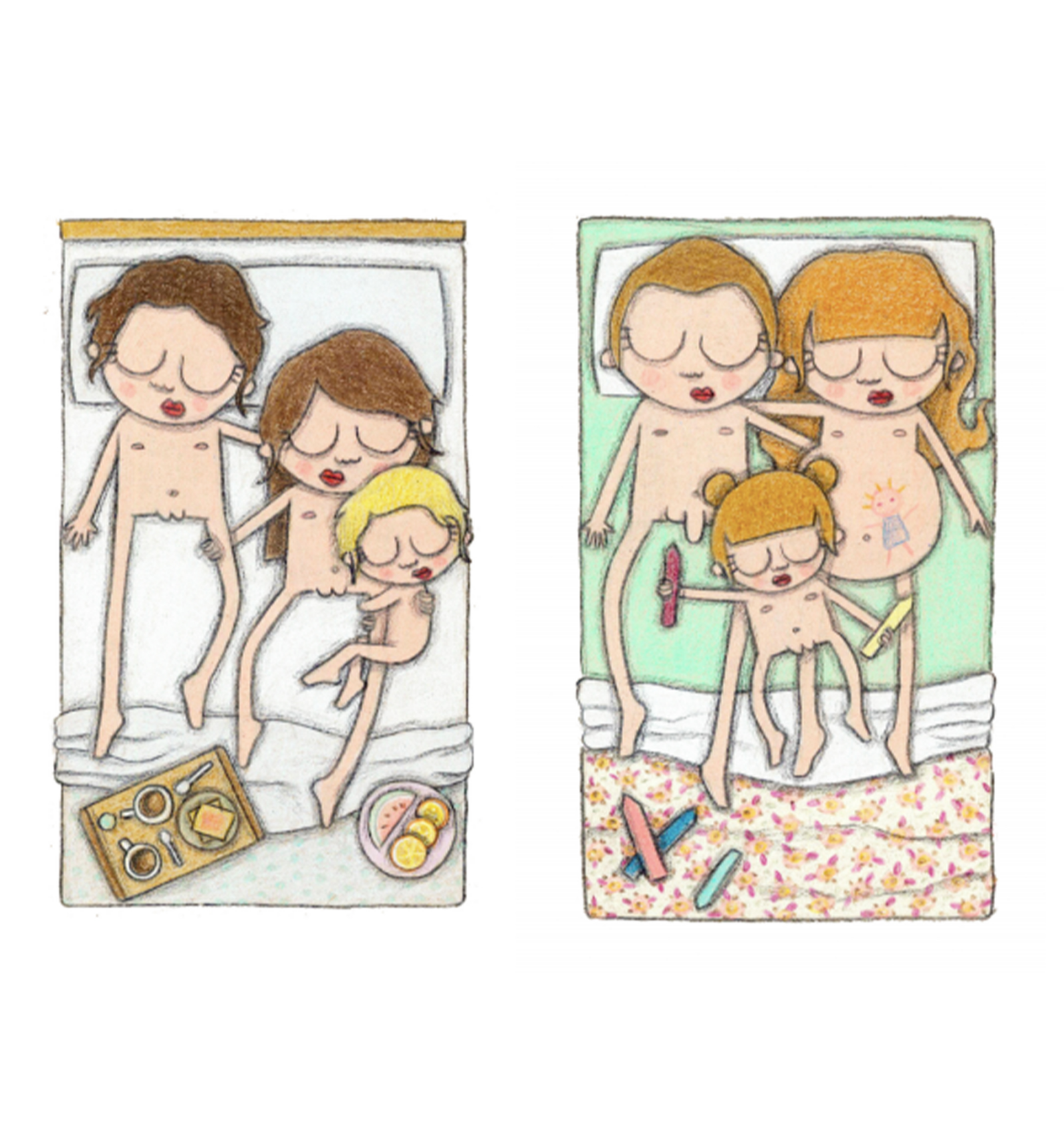 Un llibre il·lustrat sobre la diversitat familiar. De les creadores d'Oh! Mami Blue, Verónica i Jana. Aquest llibre parla de què hi ha tantes famílies com maneres d'estimar, i una família no necessita ser explicada, només viscuda. 16 vinyetes i textos rimats amb diferents famílies on el llit és l'escenari principal. A partir de 2 anys.