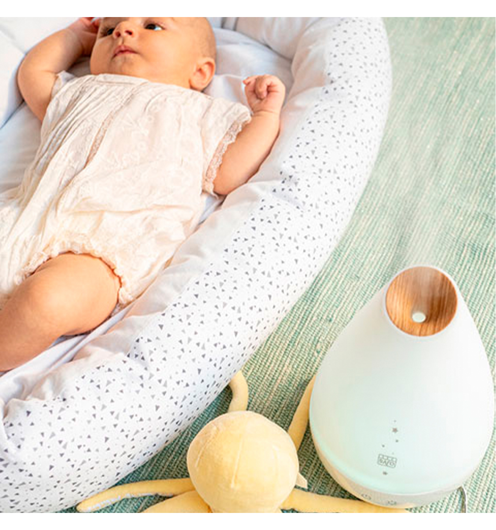 Ajuda al teu bebè a respirar millor. Aquest humidificador regula el nivell d'humitat per aconseguir un ambient adequat, generant un clima fresc i saludable per a tota la família. Usa'l per aromaterapia, com a ionitzador, i com a llum. Absolutament segur, silenciós, i vàlid per a habitacions de fins a 30m2.