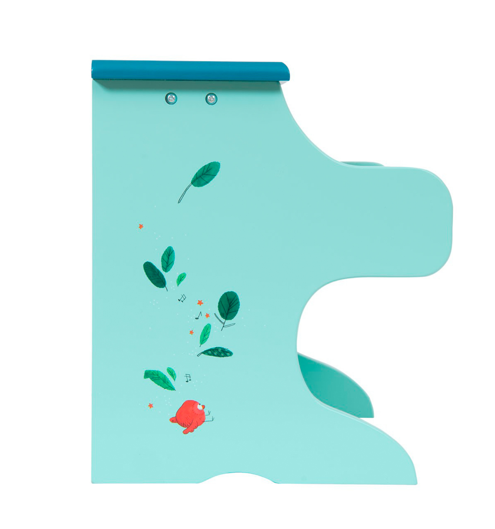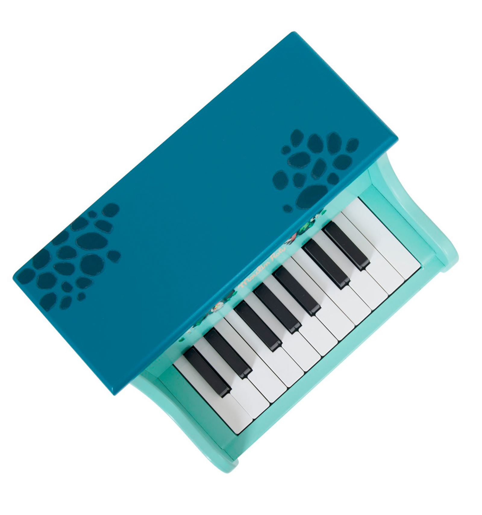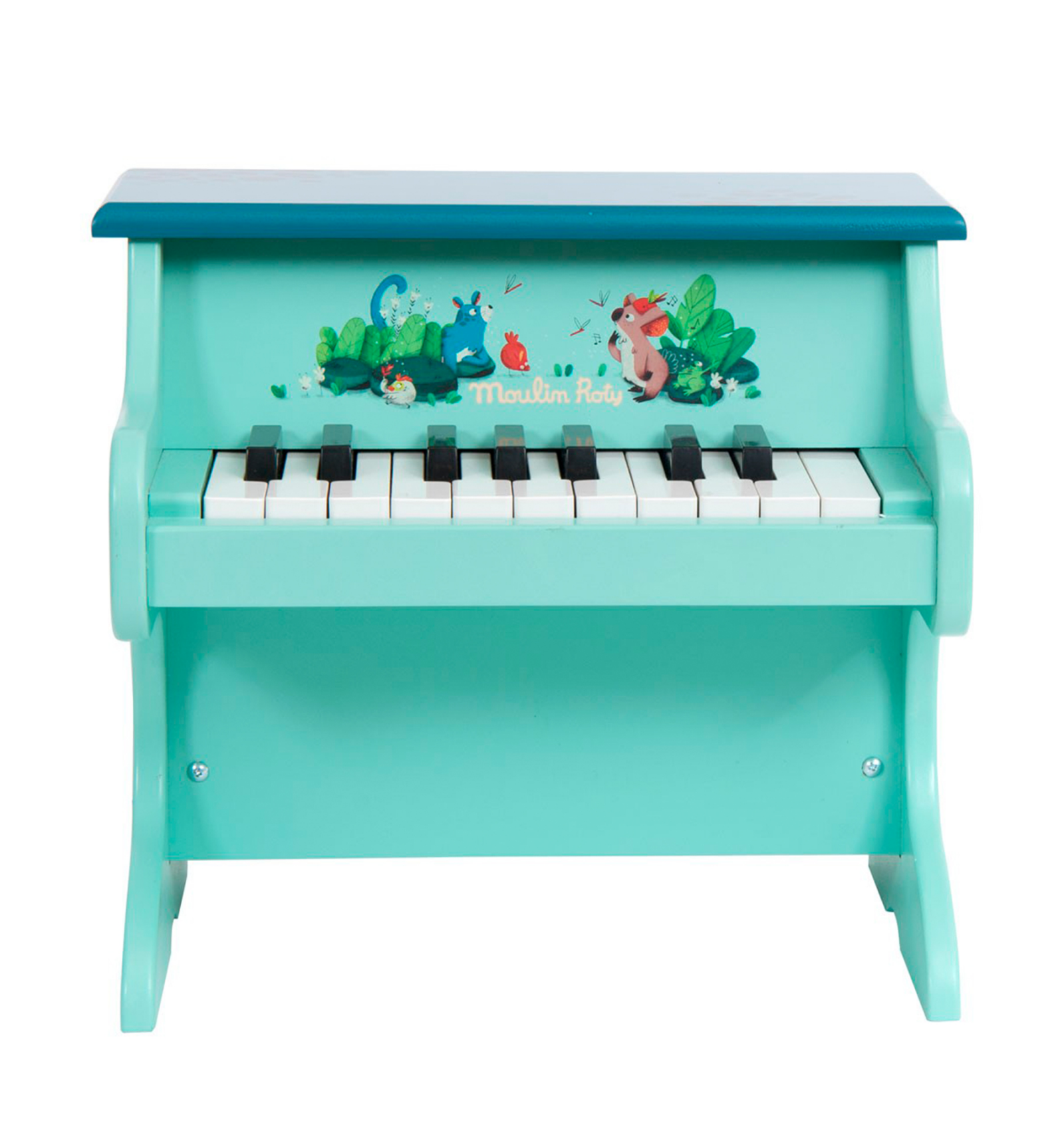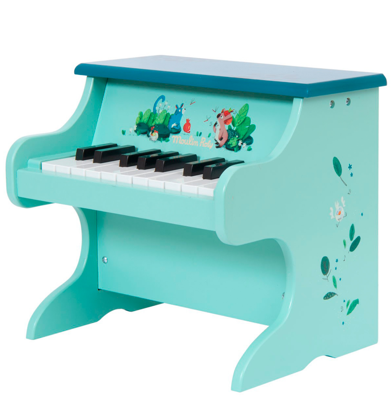 Un piano per a despertar l'amor per la música. Perquè tocar instruments a una edat primerenca promou la motricitat fina, el sentit del ritme i la consciència musical. De fusta, amb 18 tecles, bellament decorat amb els divertits animals de la jungla de Moulin Roty. Dimensions: 33 x 25 x 29 cm. A partir dels 3 anys.