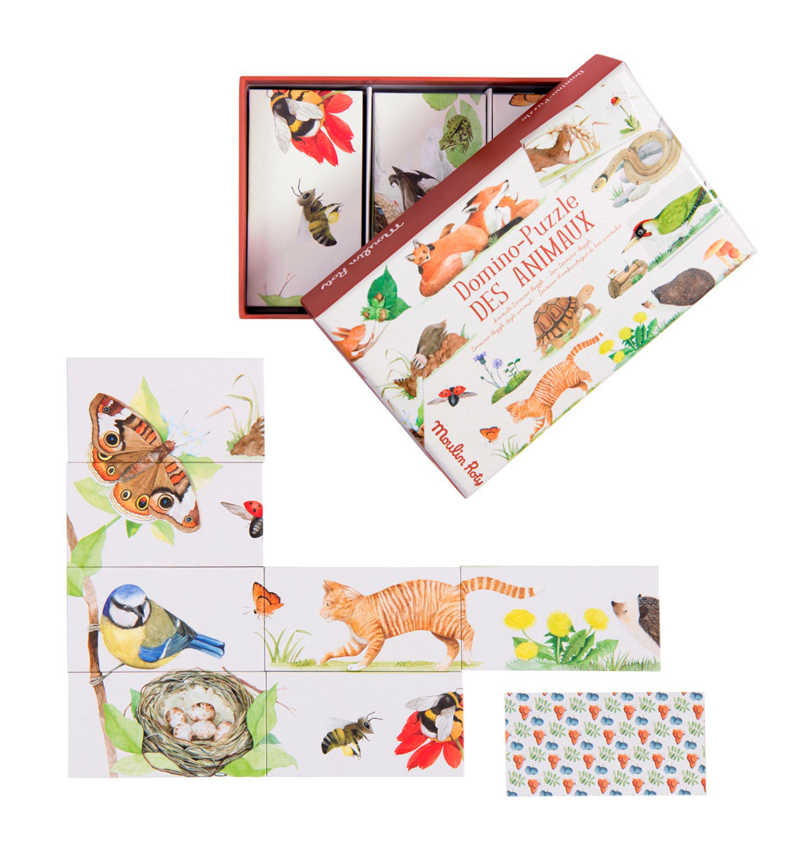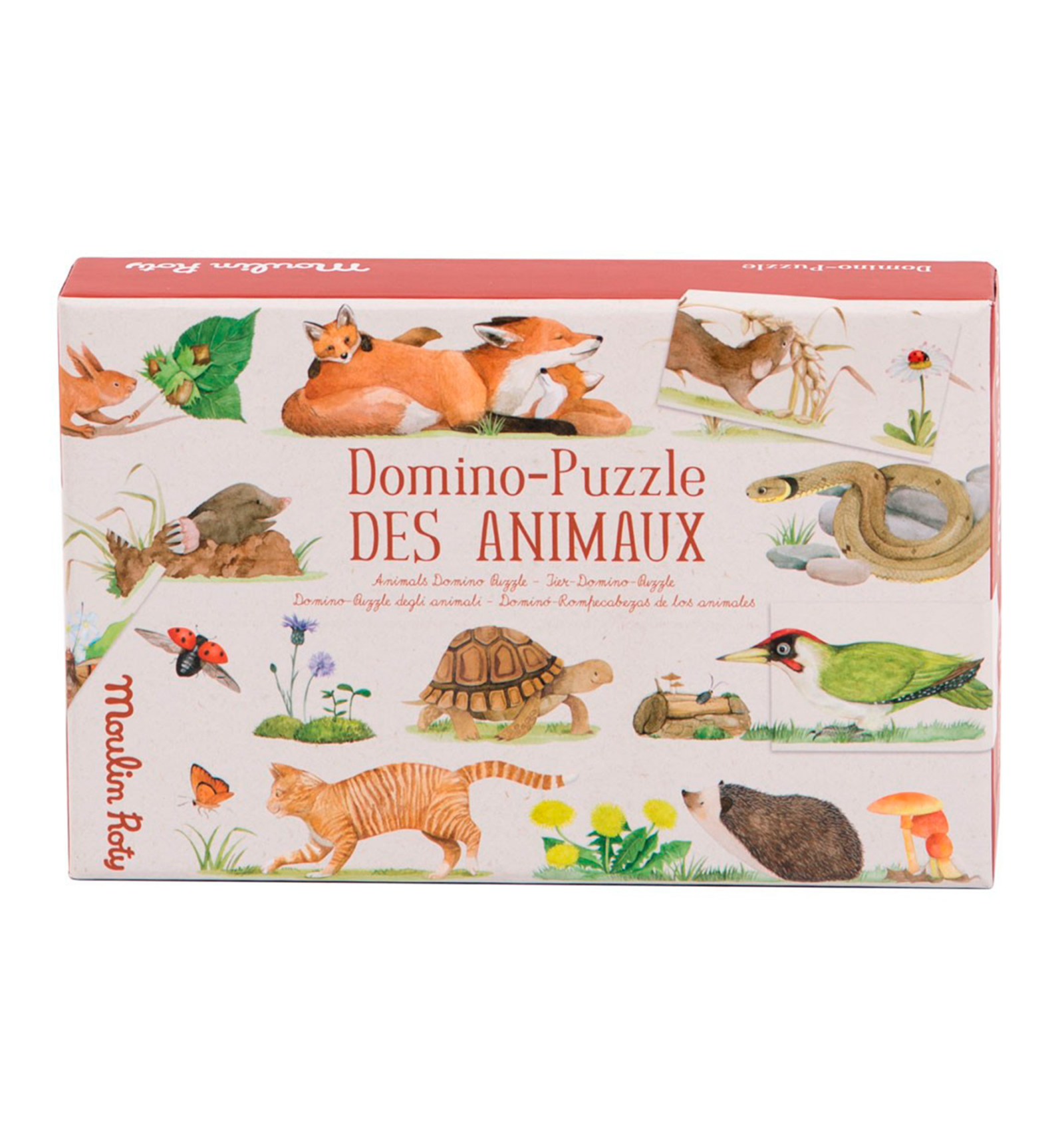 Puzle i dominó, 2 en 1! Un divertit joc amb el qual els nens aprenen a observar, reconèixer i associar imatges amb les boniques il·lustracions de Moulin Roty. Jugant al dominó assembles les imatges i resols el trencaclosques. D'1 a 4 jugadors. Dimensions: 17 x 11,5 cm. A partir de 3 anys.