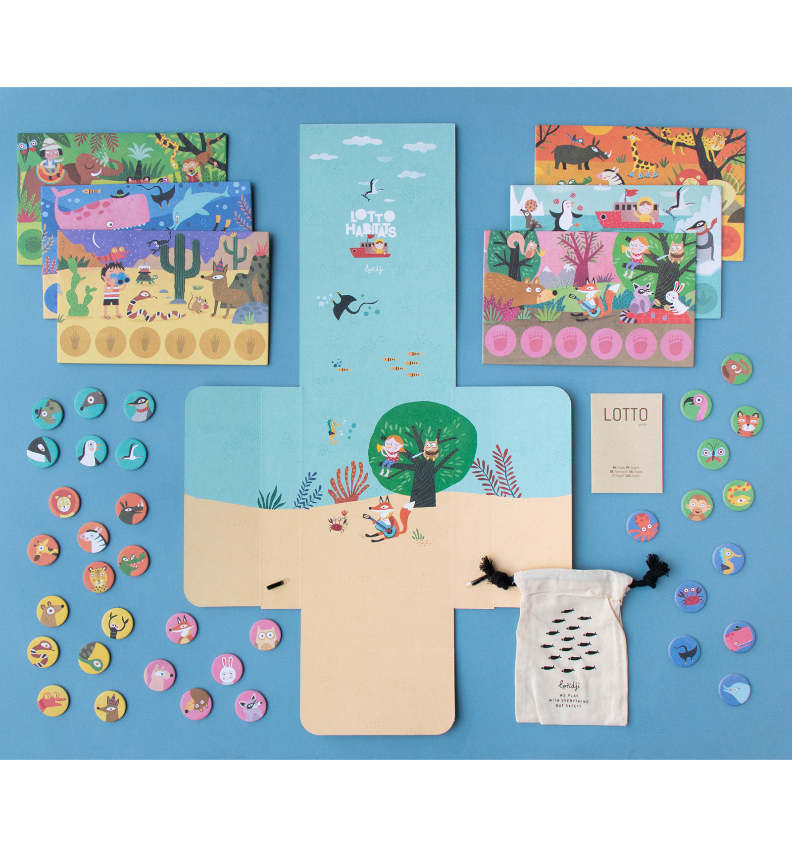 Londji té tot allò que ens agrada a La Panxamama. Proximitat (són catalans), qualitat, cura del medi ambient i un bon disseny (treballen amb dissenyadors i il·lustadors de renom). Ells, igual que nosaltres, creuen que el bon gust i l'estètica es transmet des de ben petits a través de les joguines i el joc.