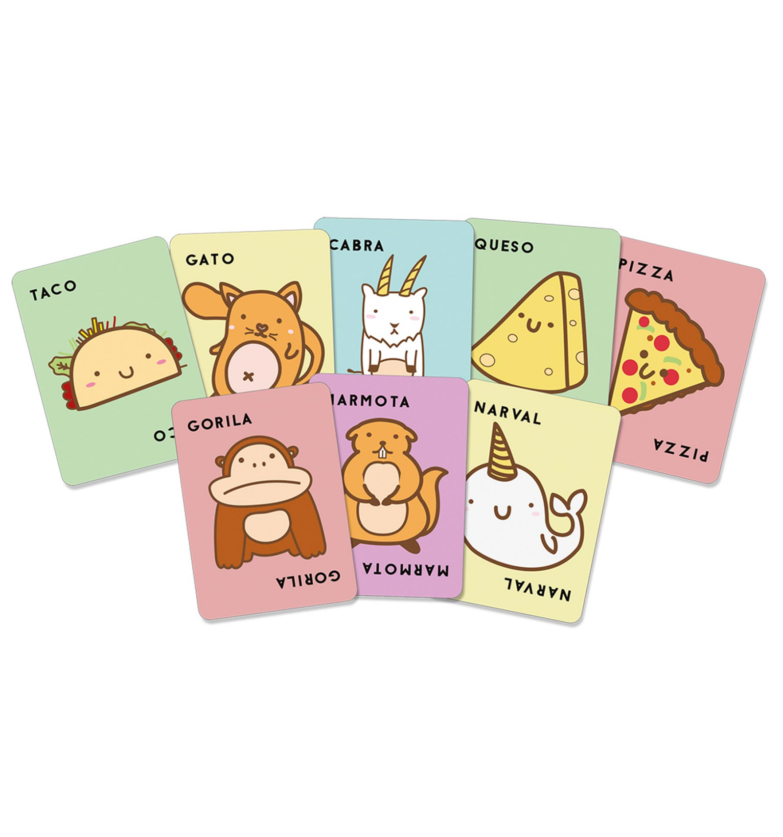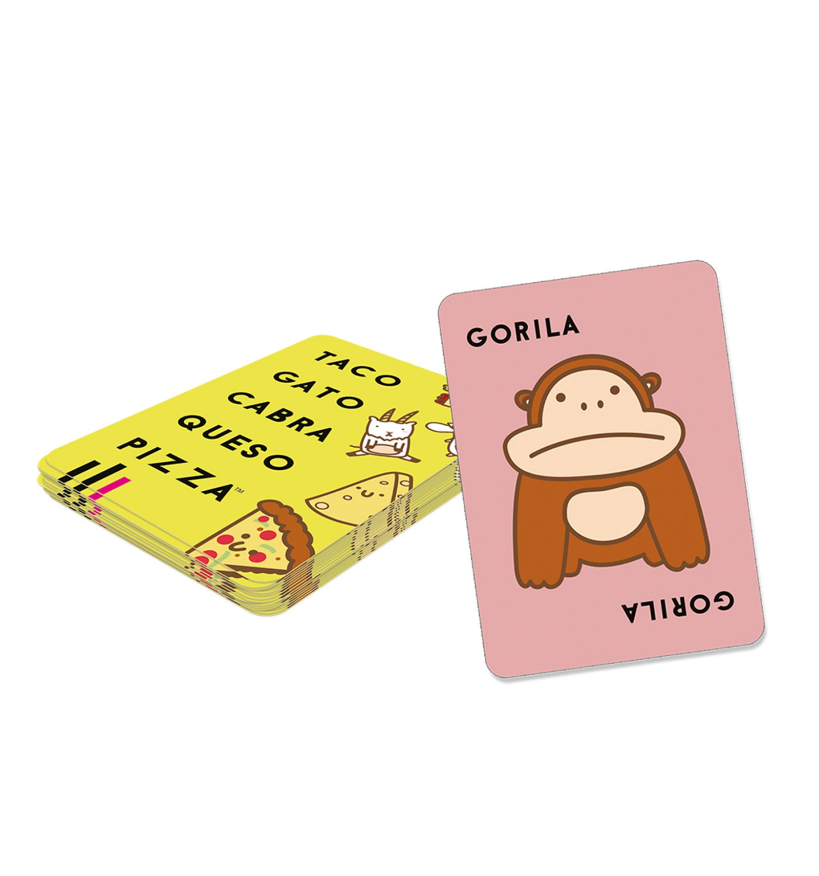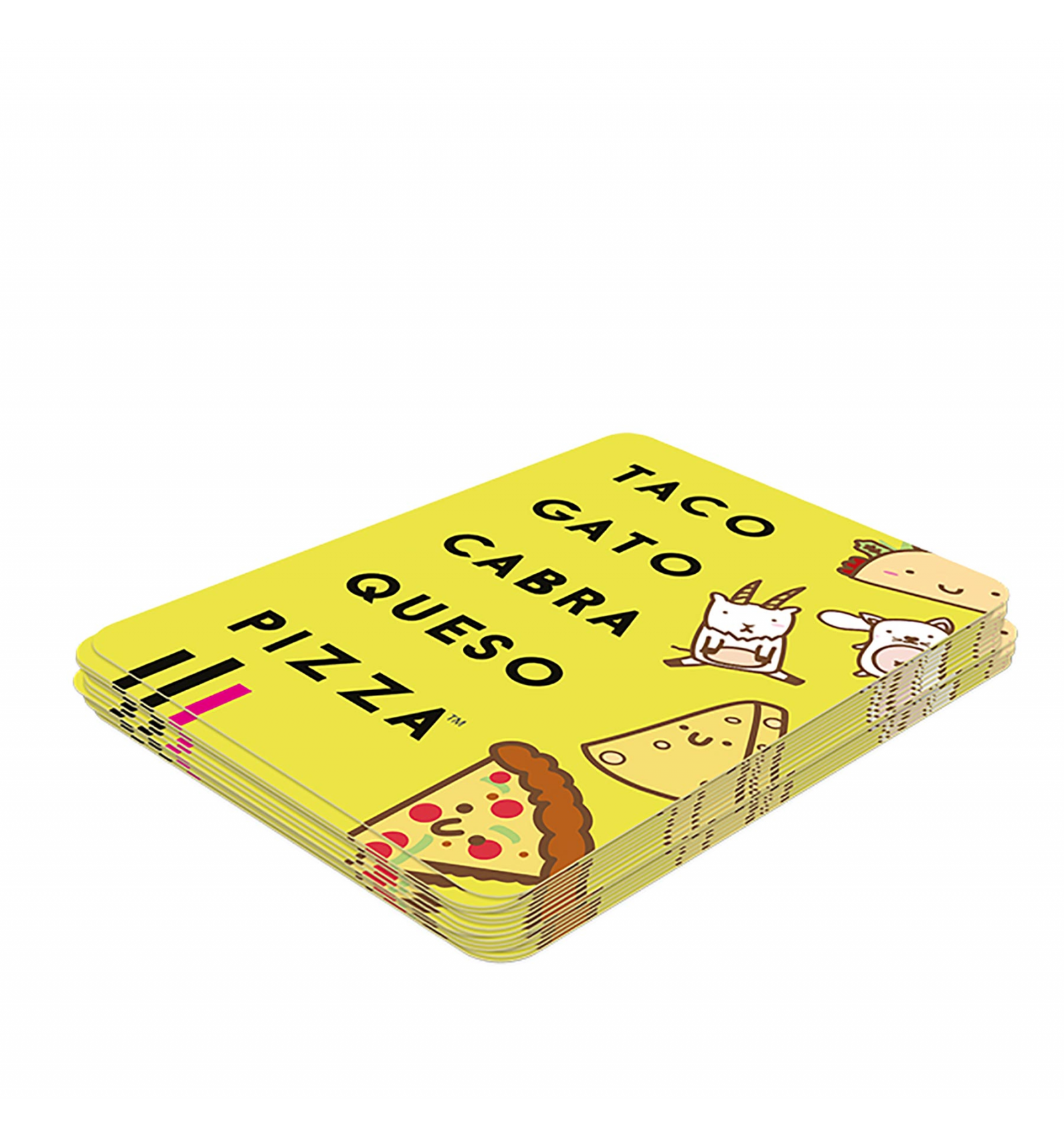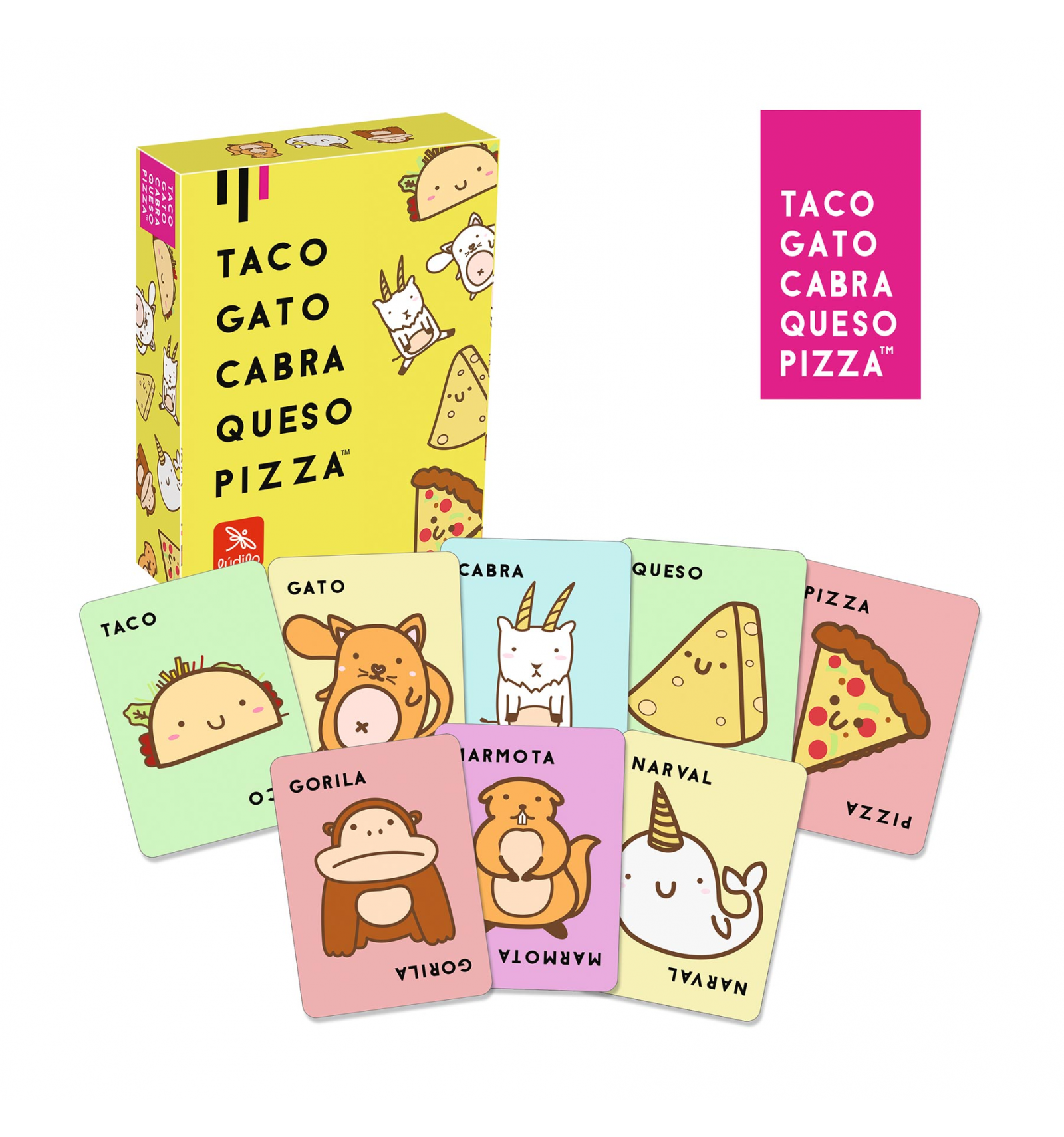 La diversió està garantida amb aquest frenètic i divertit joc de cartes. En Taco gat cabra queso pizza has de ser el més ràpid. Quan un jugador es descarti d'una carta que coincideixi amb la paraula que diu, col·loca la teva mà sobre la pila central, l'últim a posar la mà es queda amb totes les cartes de la pila! Concentra't i sigues el més ràpid a desfer-te de totes les teves cartes.