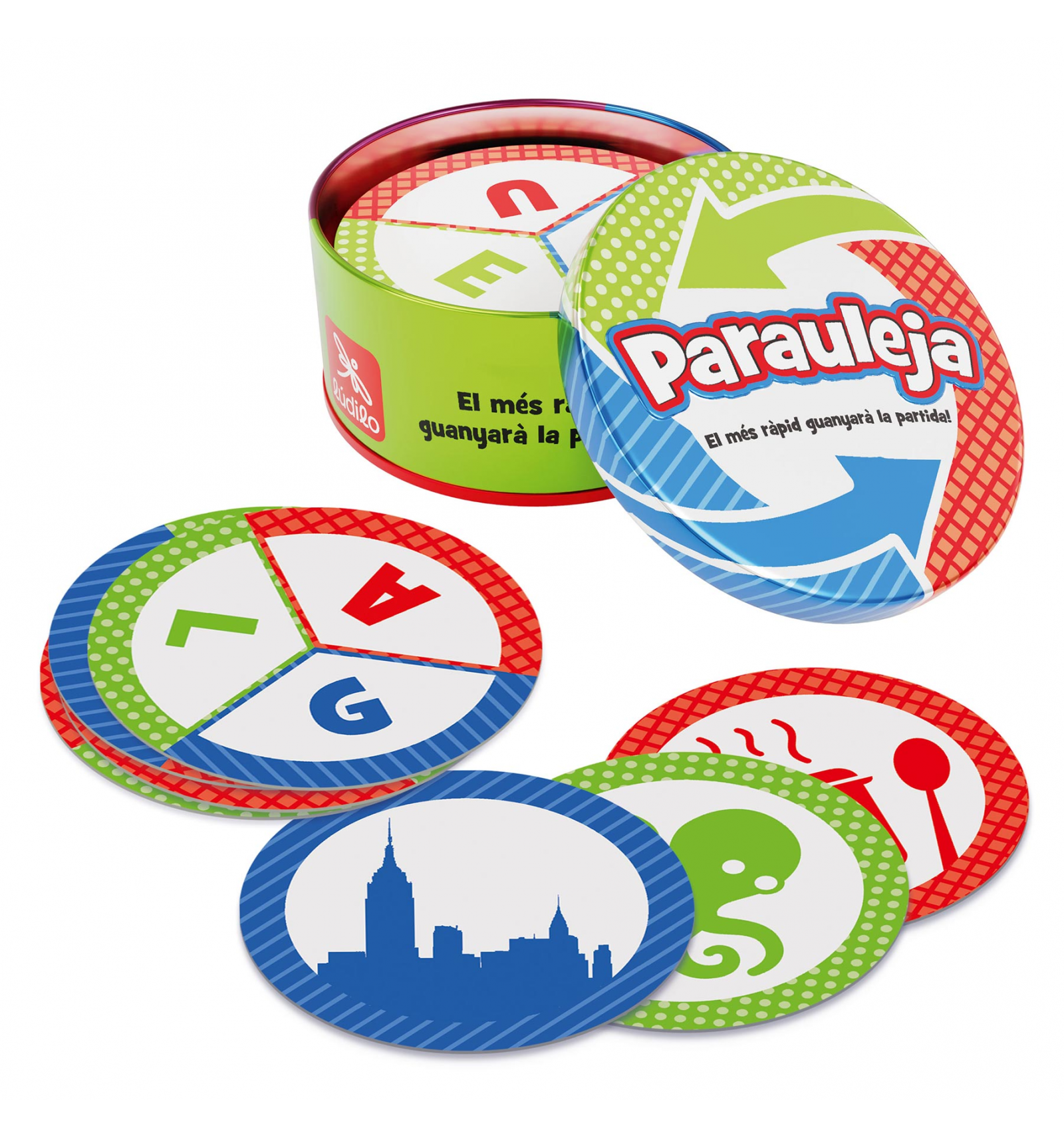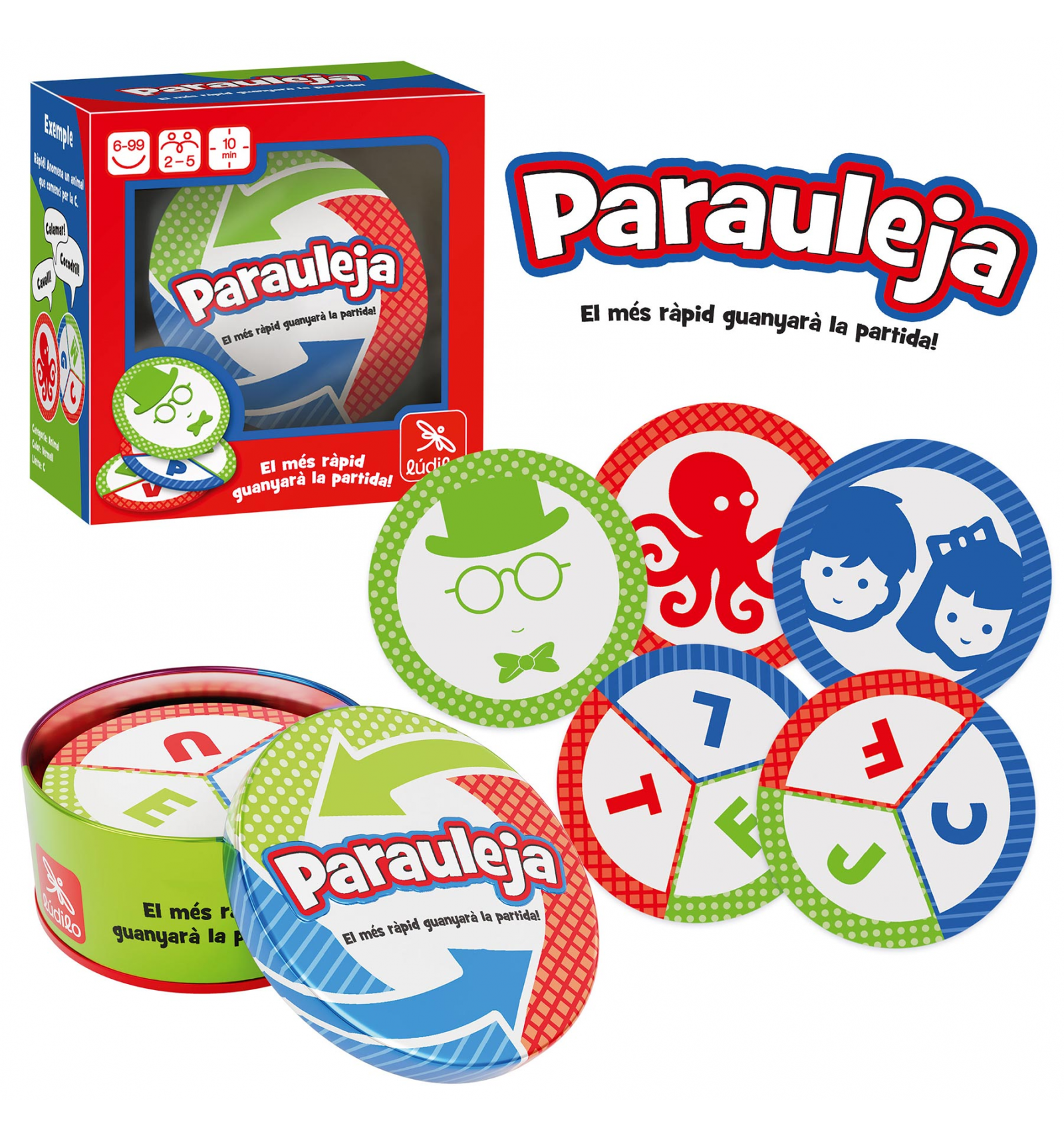 Parauleja és un joc divertit i educatiu a parts iguals. Tenim un plec de cartes de categories (objecte, professions, animals, països, etc) Un jugador gira la primera carta i queden al descobert tres lletres, una de cada color. El primer en trobar una paraula de la categoria que indica la carta que comenci per la lletra del mateix color guanya.