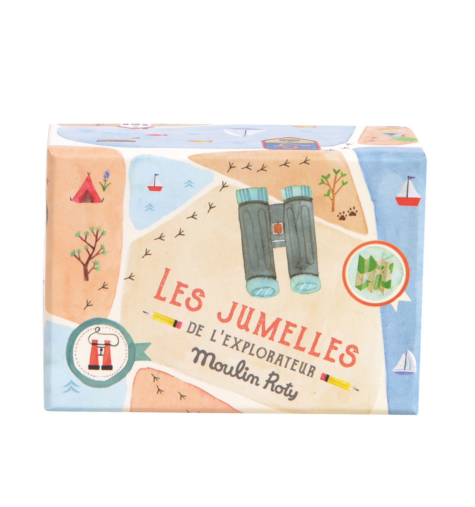 Per a exploradors i aventurers. Prismàtics infantils que funcionen de veritat. Una manera pràctica i divertida perquè coneguin el que els envolta, ampliant la visió del seu món. De la col·lecció El Jardí de Moulin Roty, que busca que els nens explorin el seu entorn d'una manera lliure al mateix temps que didàtica. Dimensions 16 x 9 cm. A partir de 4 anys.