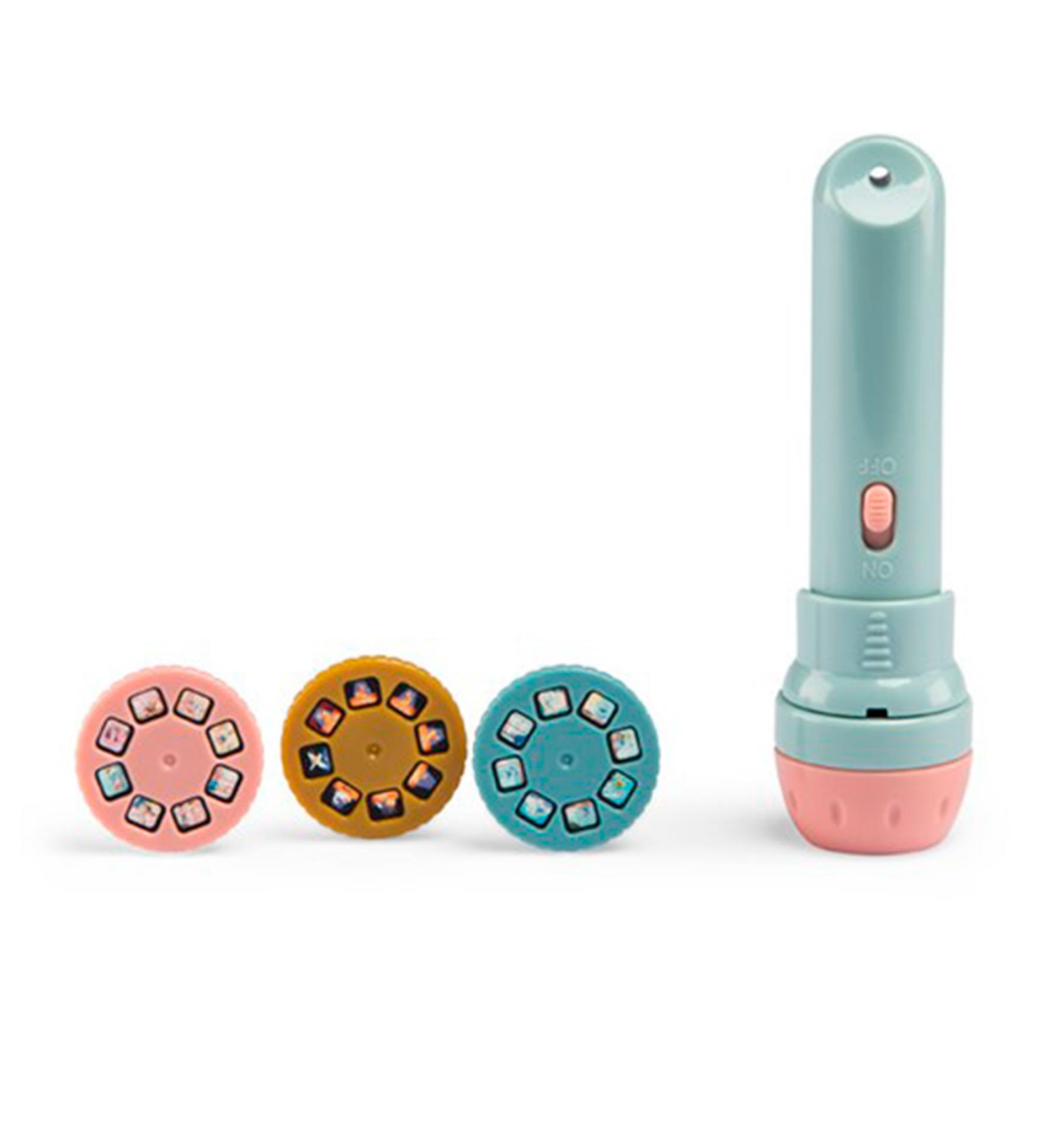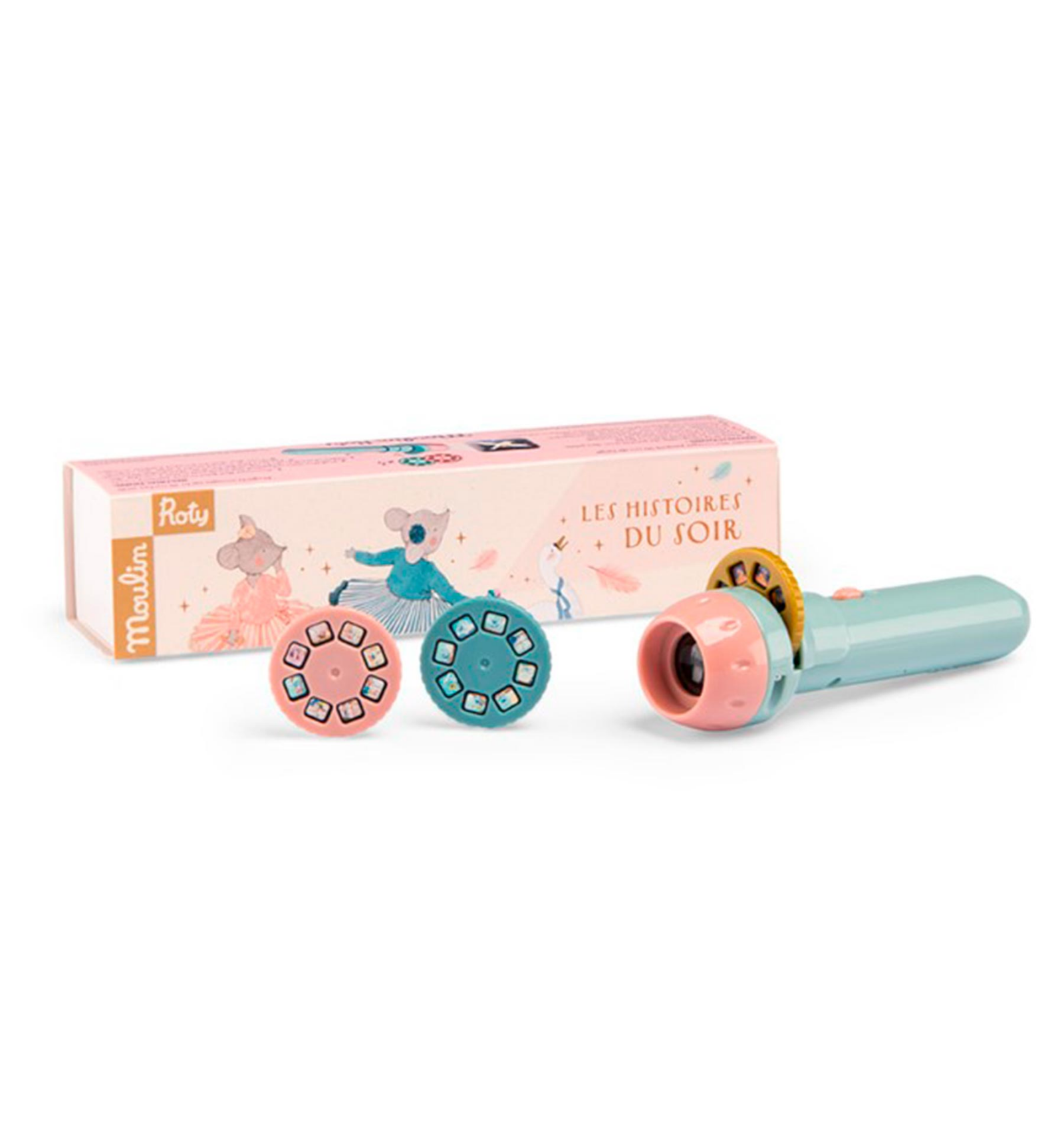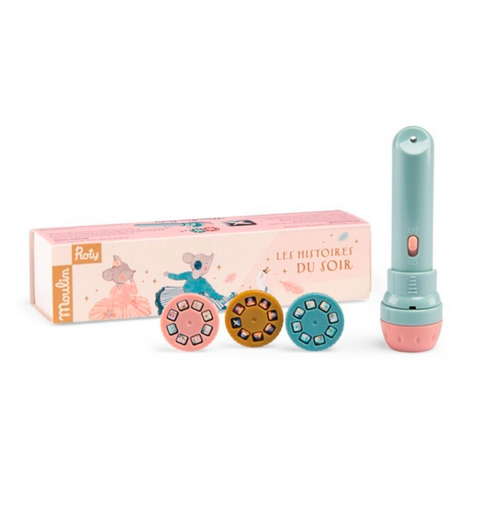 En la sessió de cinema d'avui, 3 contes amb les aventures de Calinours. Conté 1 llanterna i 3 discos amb imatges i sense textos, per a inventar lliurement mil històries. Capsa: 17 x 8 cm. A partir de 3 anys, o 2 sota supervisió.