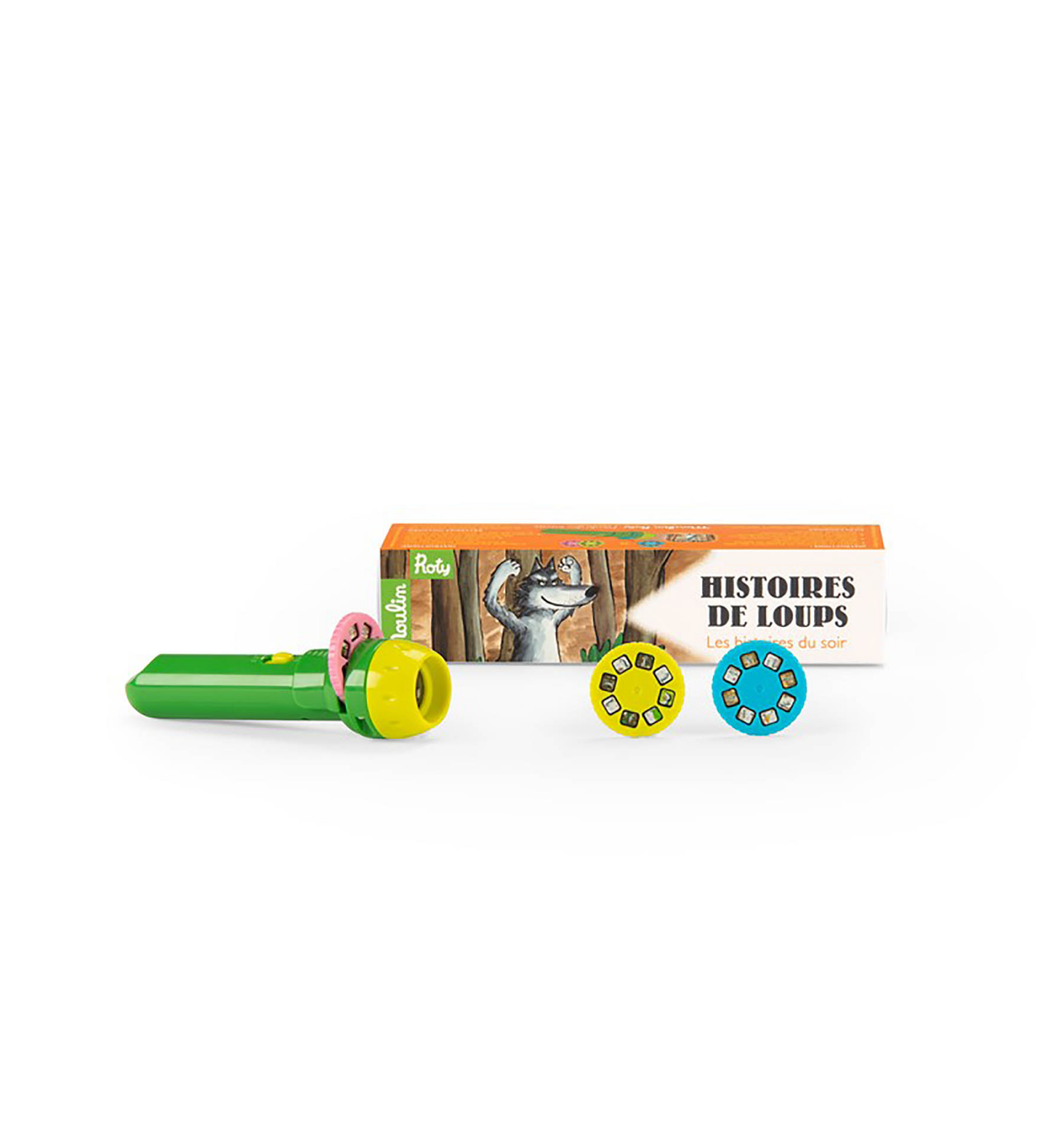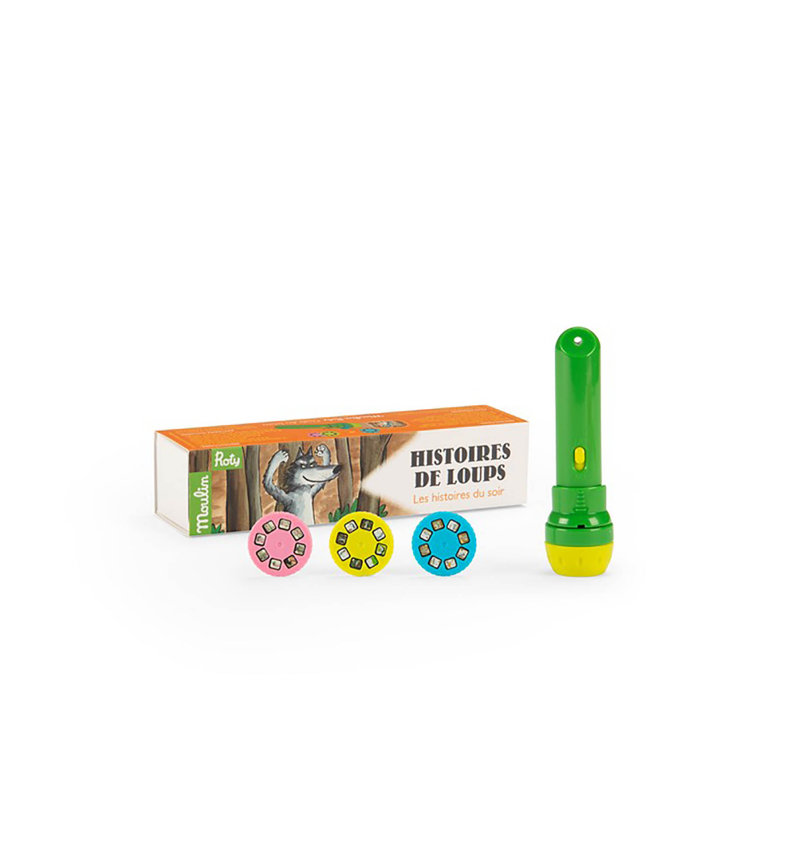 La llanterna projector Aventures del Llop permet descobrir històries màgiques projectades a la paret o al sostre. Inclou 3 discos amb 8 imatges cadascun, que narren divertides aventures i mostren la veritable naturalesa del llop: un personatge gentil i entranyable. Ideal per estimular la imaginació dels nens a partir de 4 anys.