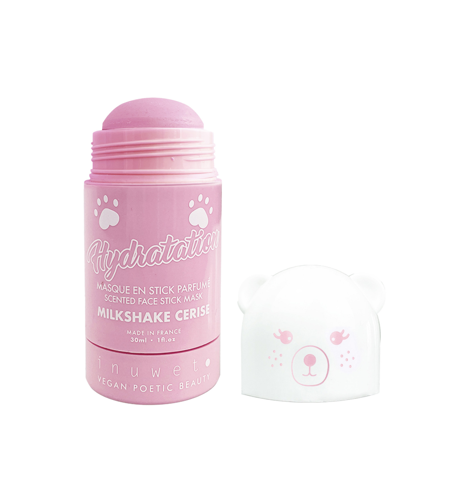 Mascareta facial en estic amb aroma a cirera, formulada amb kaolin i àloe vera BIO per calmar, hidratar i purificar la pell. 99% dels ingredients naturals. A partir de 6 anys. Made in France.