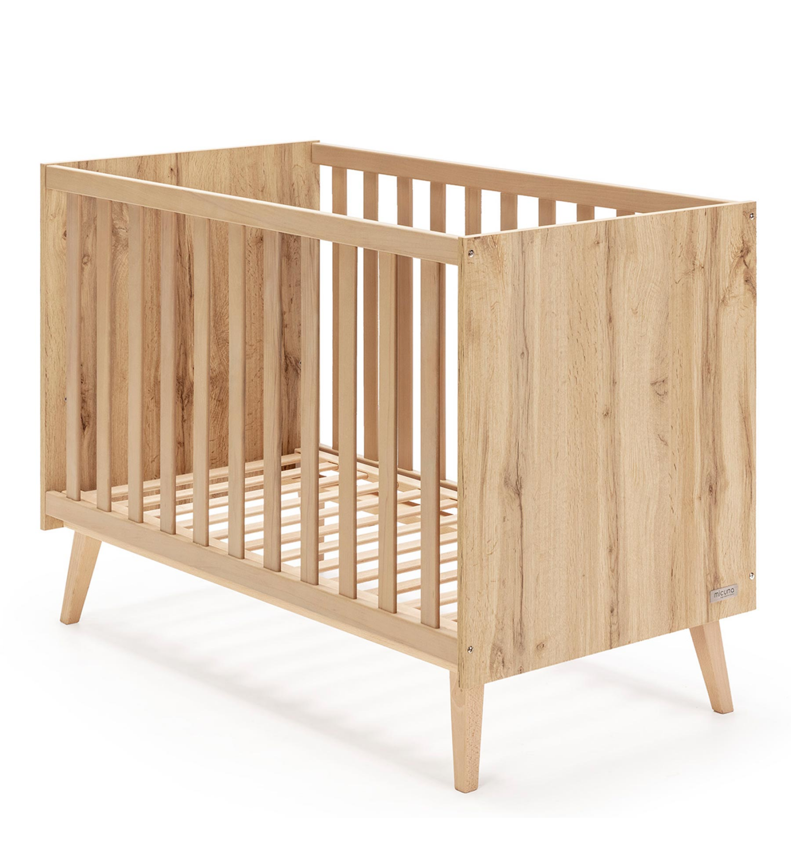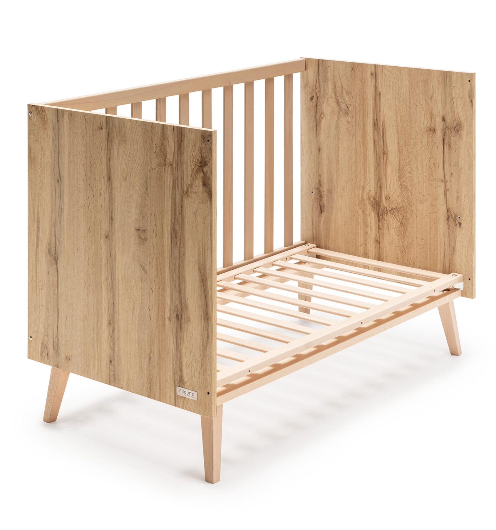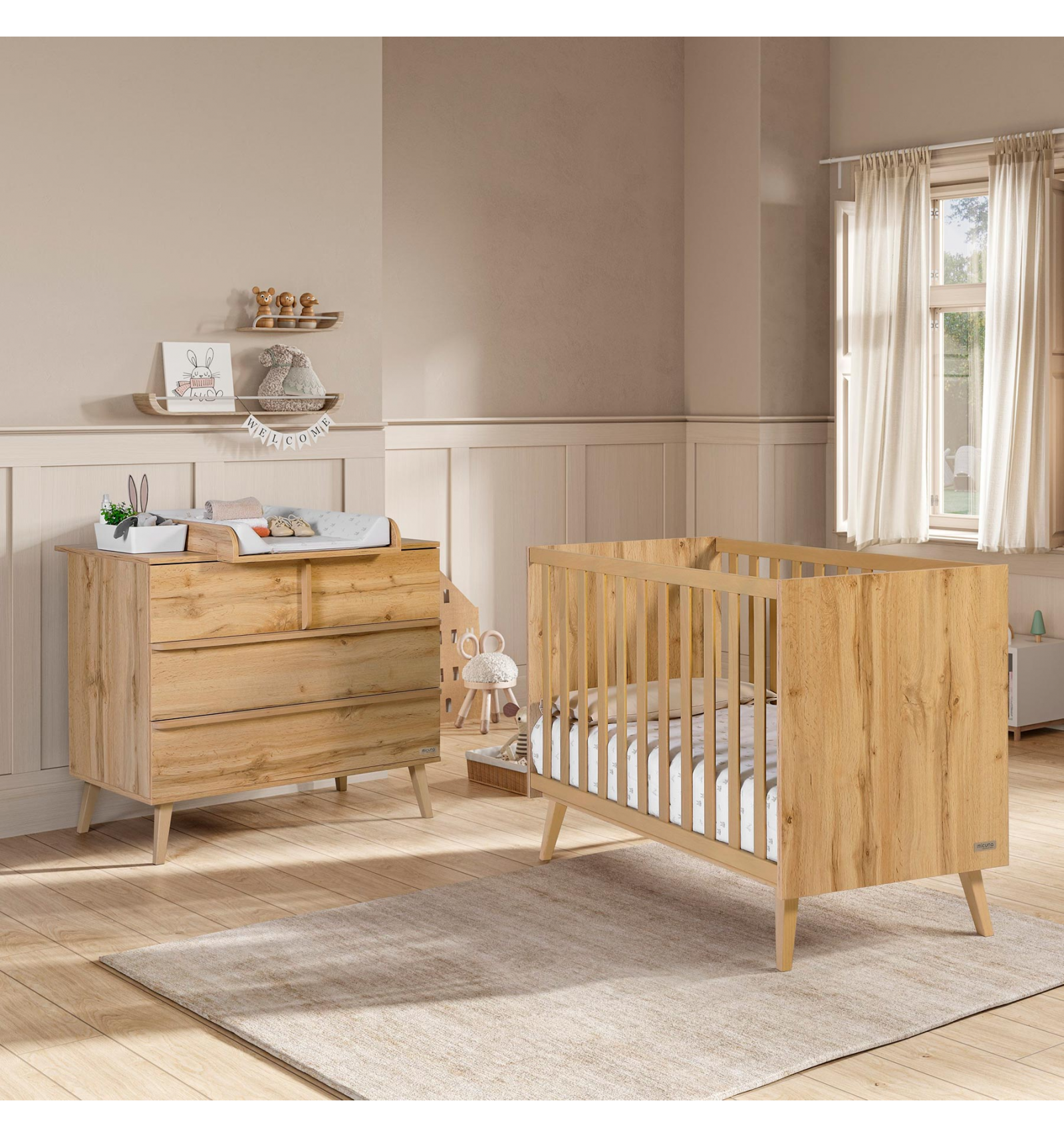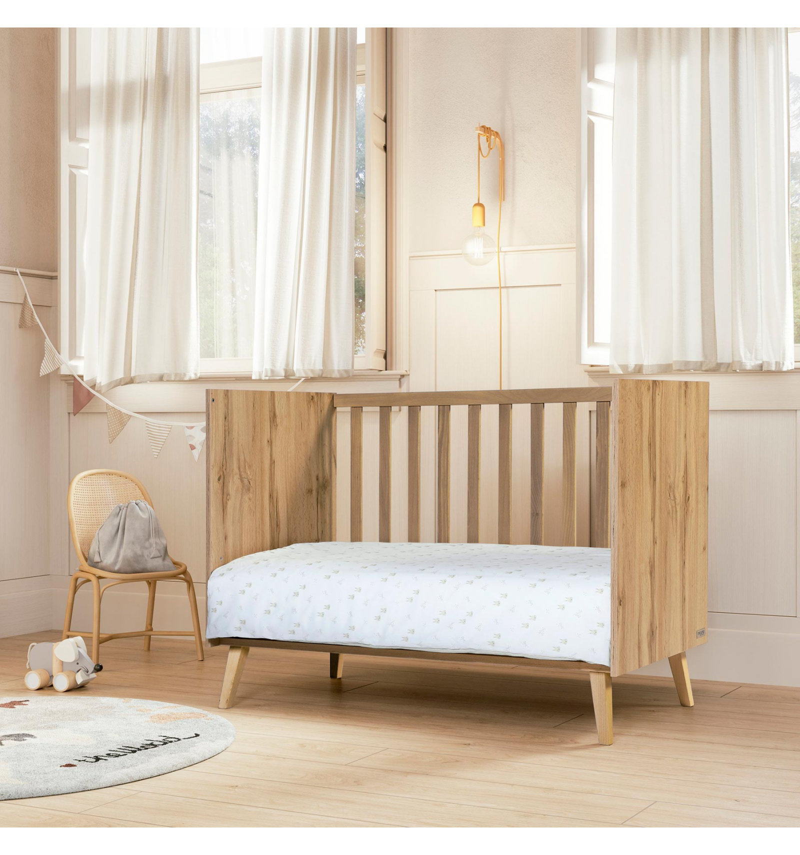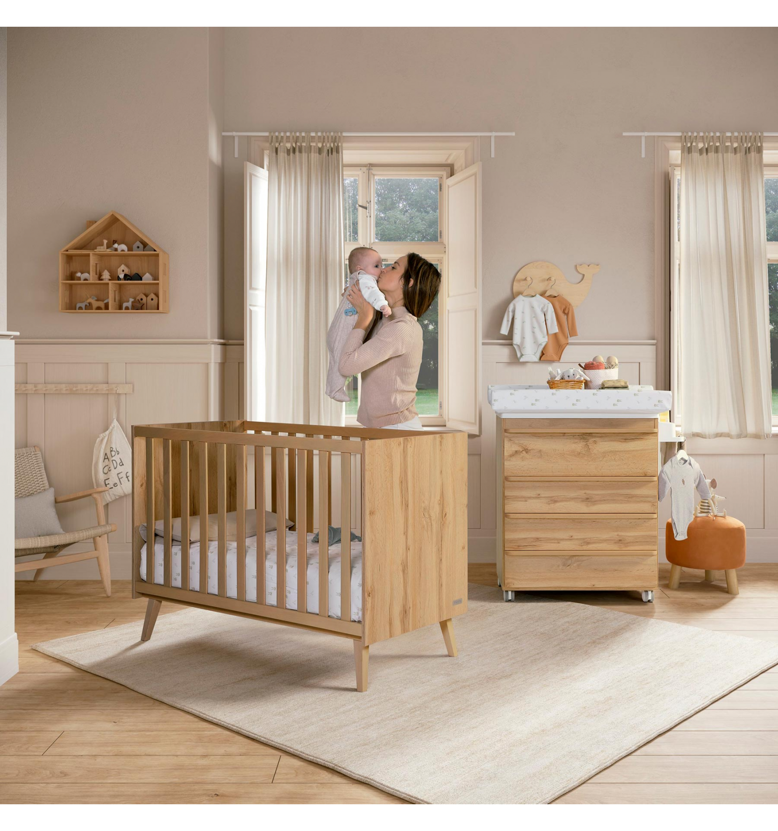 Inspirat en un estil natural i fabricat amb fustes procedents de boscos sostenibles, el bressol de la col·lecció Martha amb el seu acabat en roure donarà un toc molt elegant a l'habitació del teu petit.