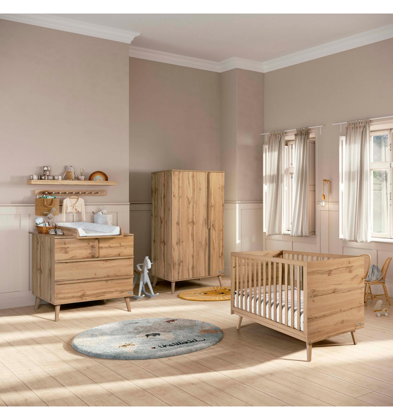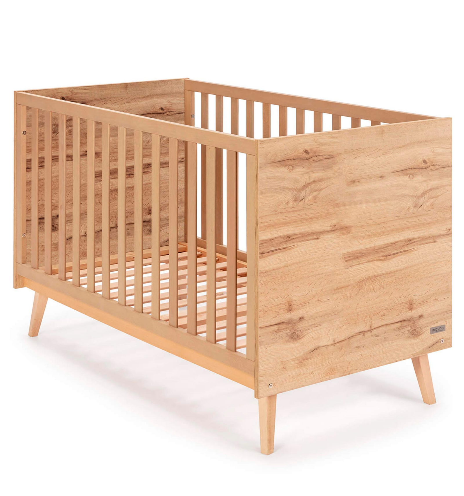 Inspirat en un estil natural i fabricat amb fustes procedents de boscos sostenibles, el bressol de la col·lecció Martha amb el seu acabat en roure donarà un toc molt elegant a l'habitació del teu petit.