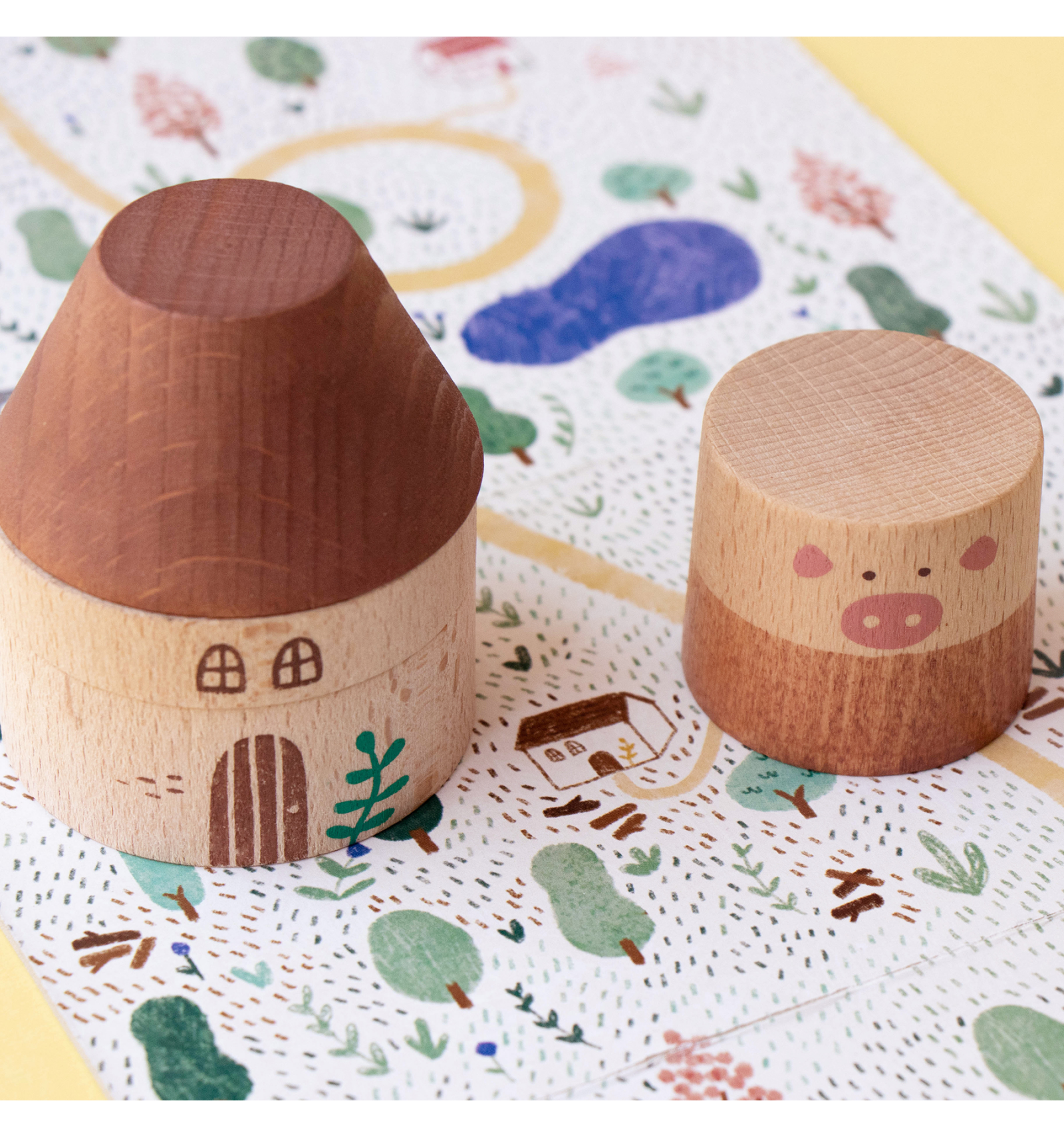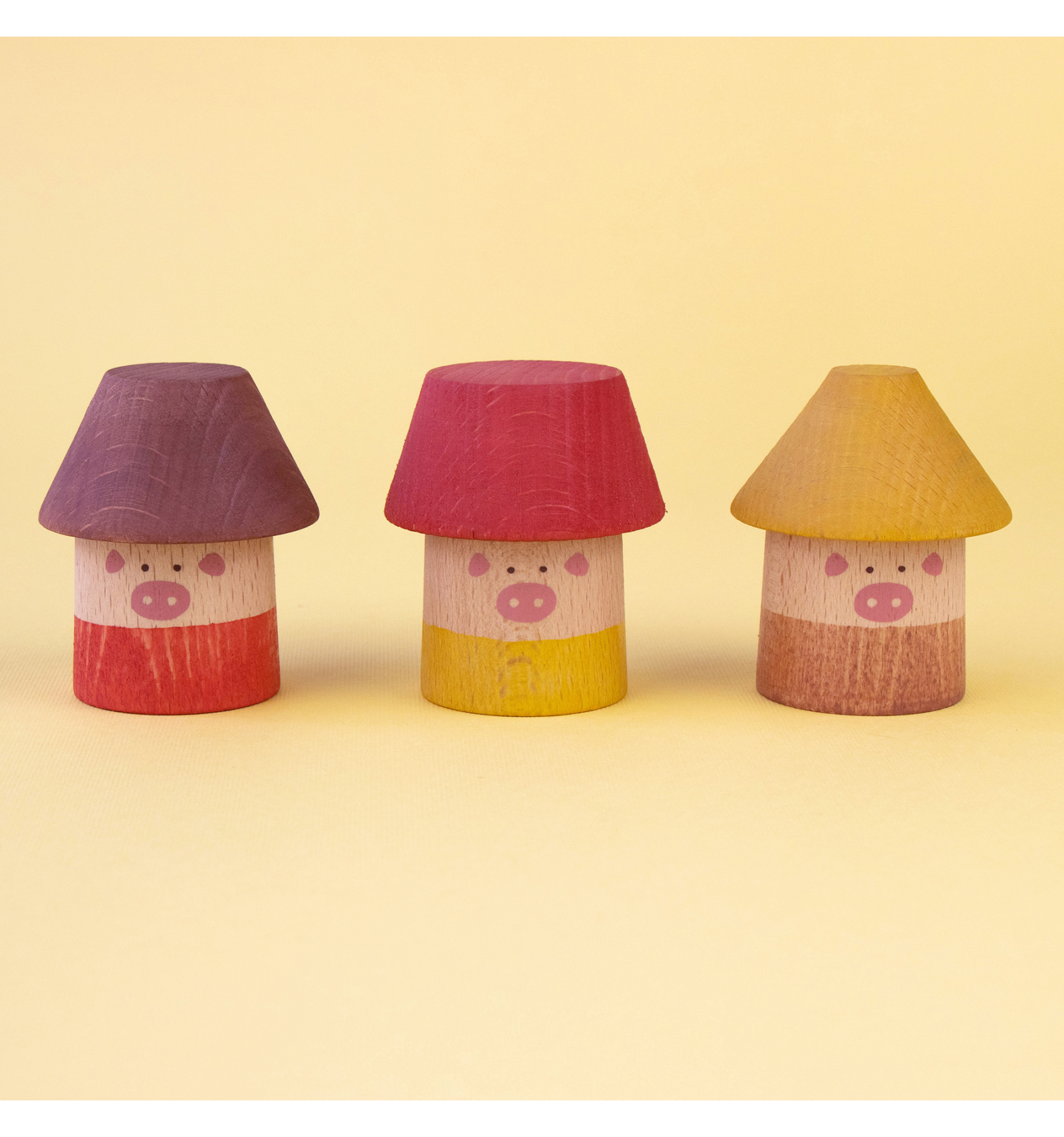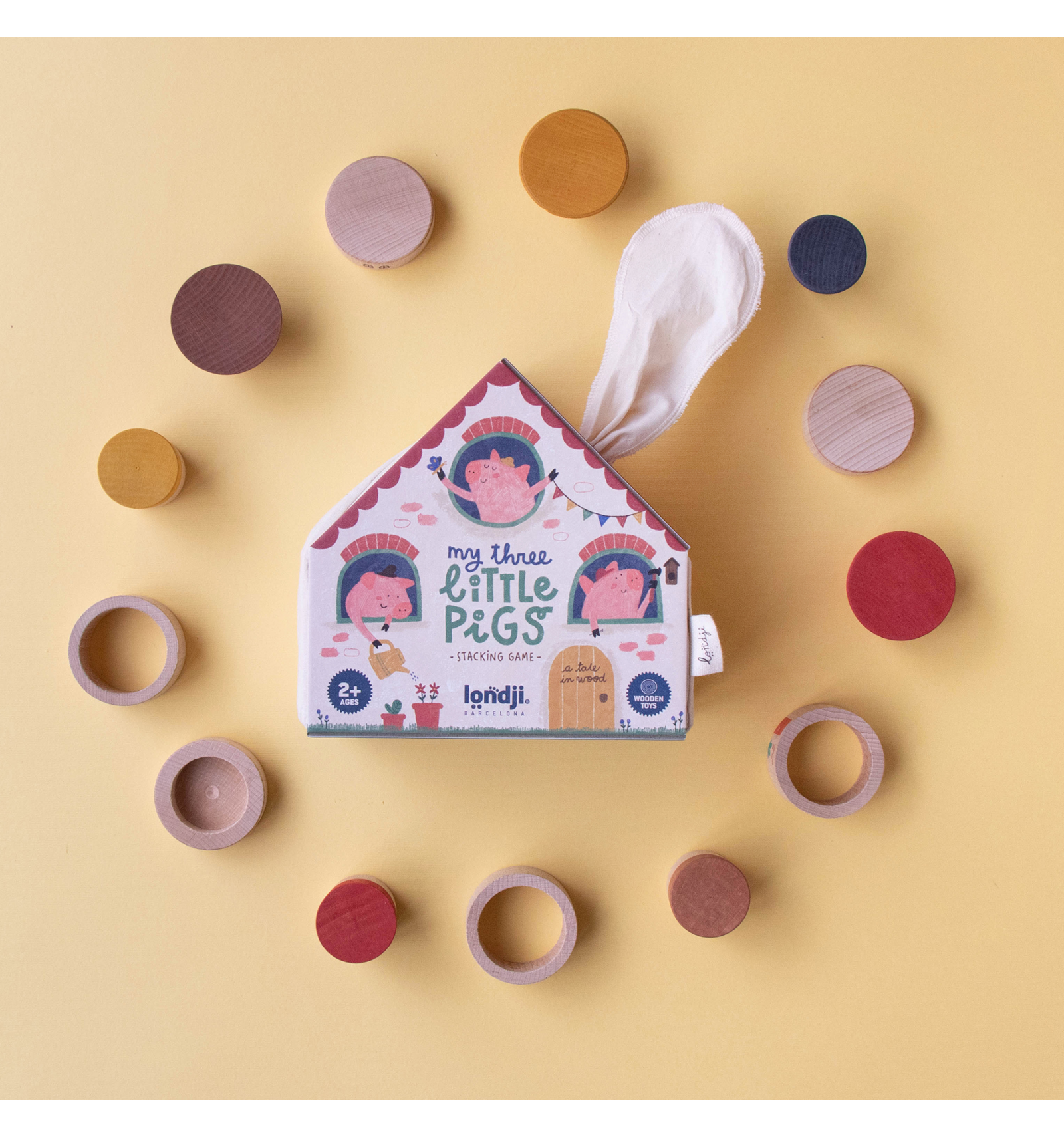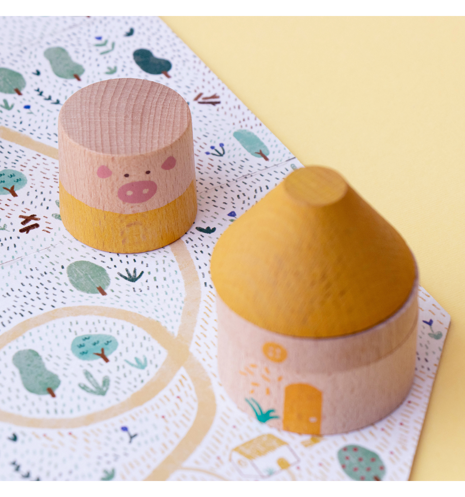 Hi havia una vegada tres porquets que van decidir construir les seves cases. Ara els més petits poden ajudar-los abans que arribi el llop amb aquesta joguina de fusta únic.